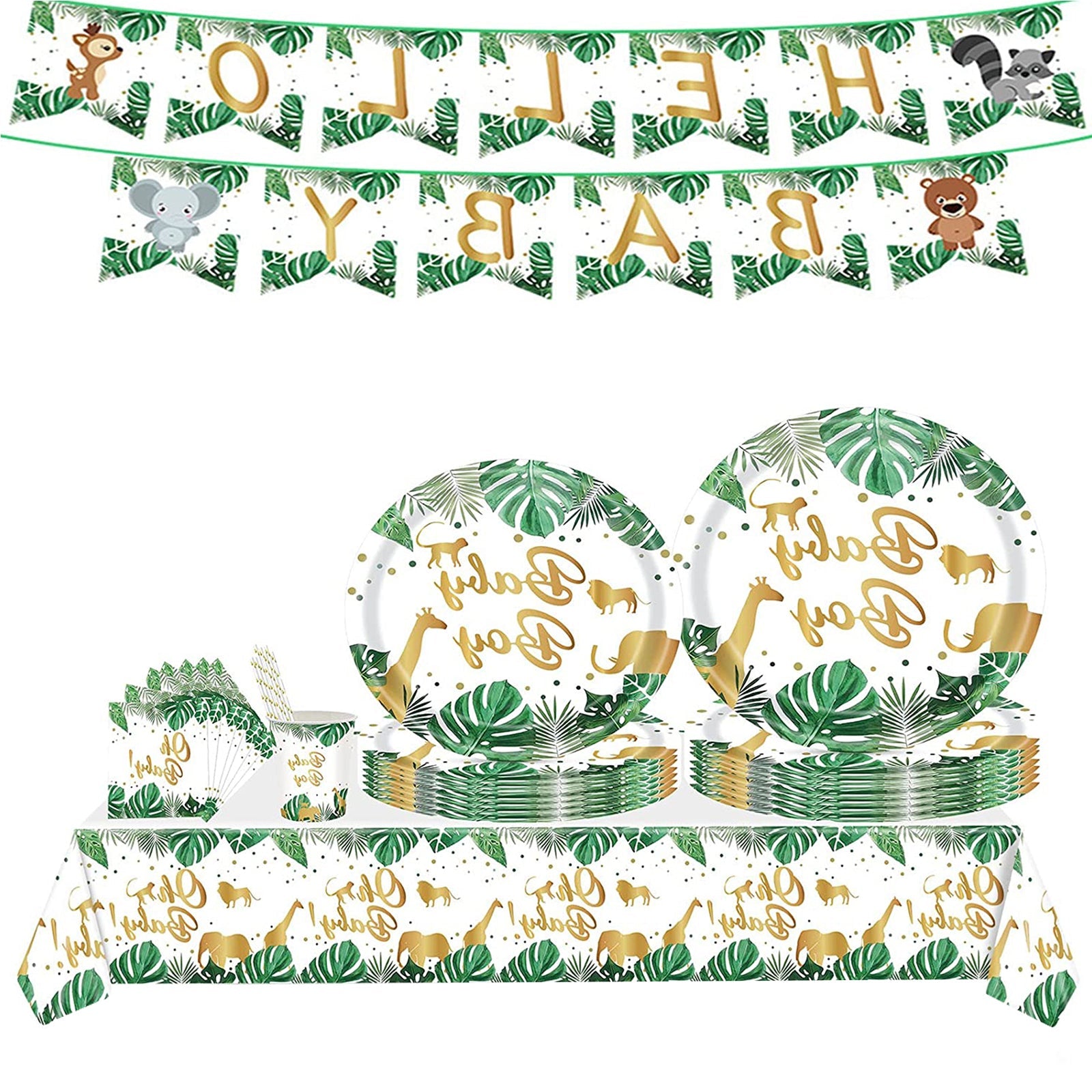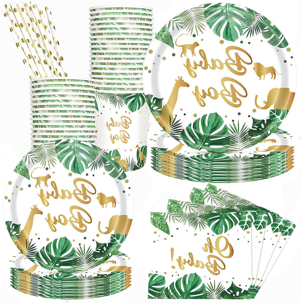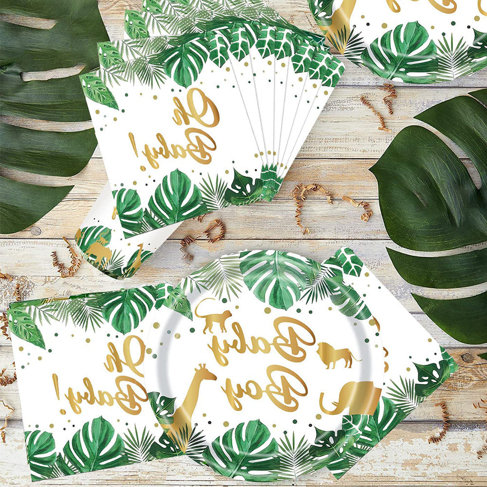 RONSHIN 120PCS Jungle Animals Tableware Set Includes Plates Napkins Cups Straws Jungle Theme