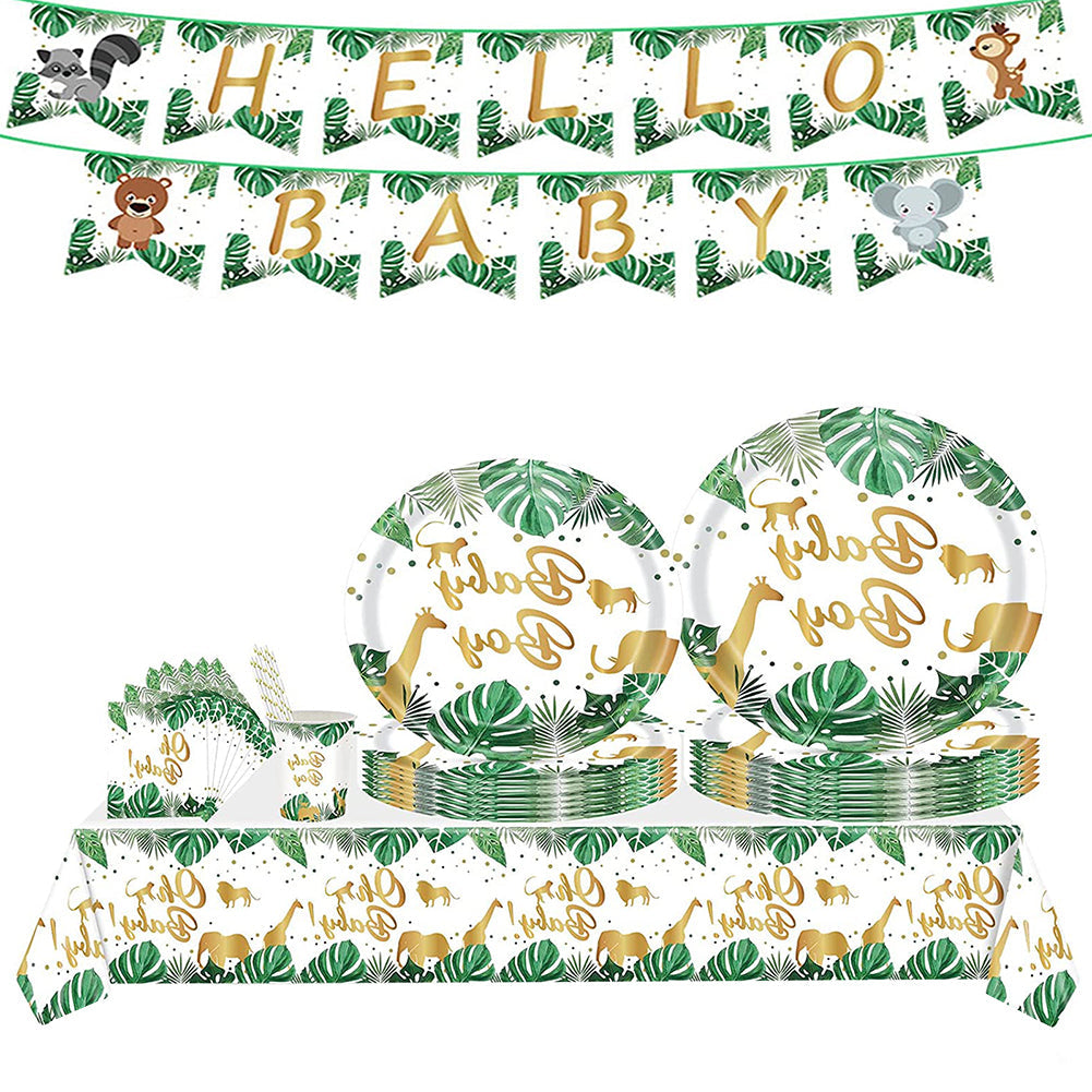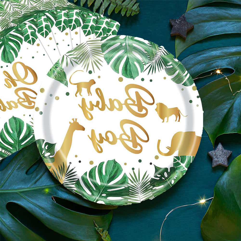 4. Jungle Party Decorations Kit: The wild animals party supplies are very complete, which include everything you need for kids birthday. Our gold jungle wild animals theme party decorations product includes 24pcs 9'' animal plates, 24pcs 7'' party plates, 24pcs napkins(measuring 6.5" x 6.5"), 24pcs jungle cups, 24 pcs Paper Straws. Totally 120 pieces. Birthday Party tableware kit can serve 24 guests, ensuring you have more than enough room for your favorite foods and tr eats.