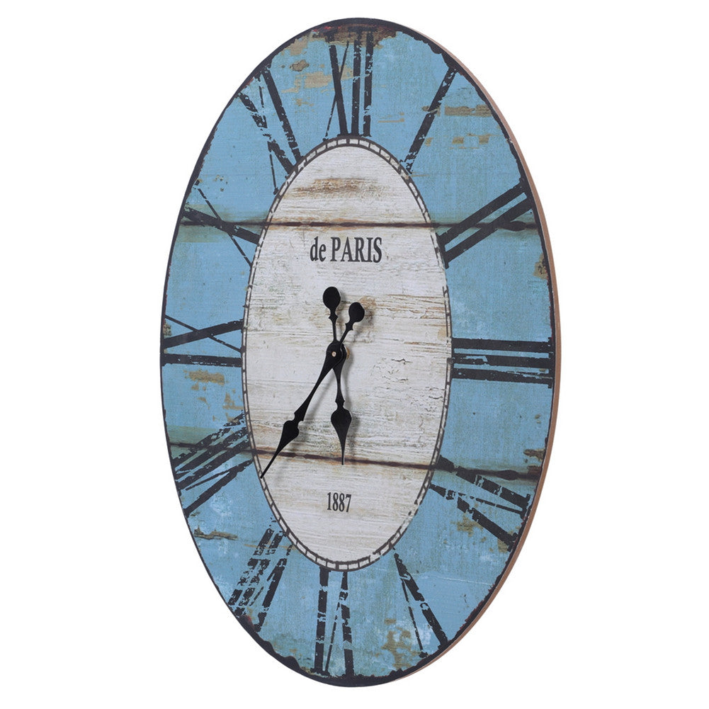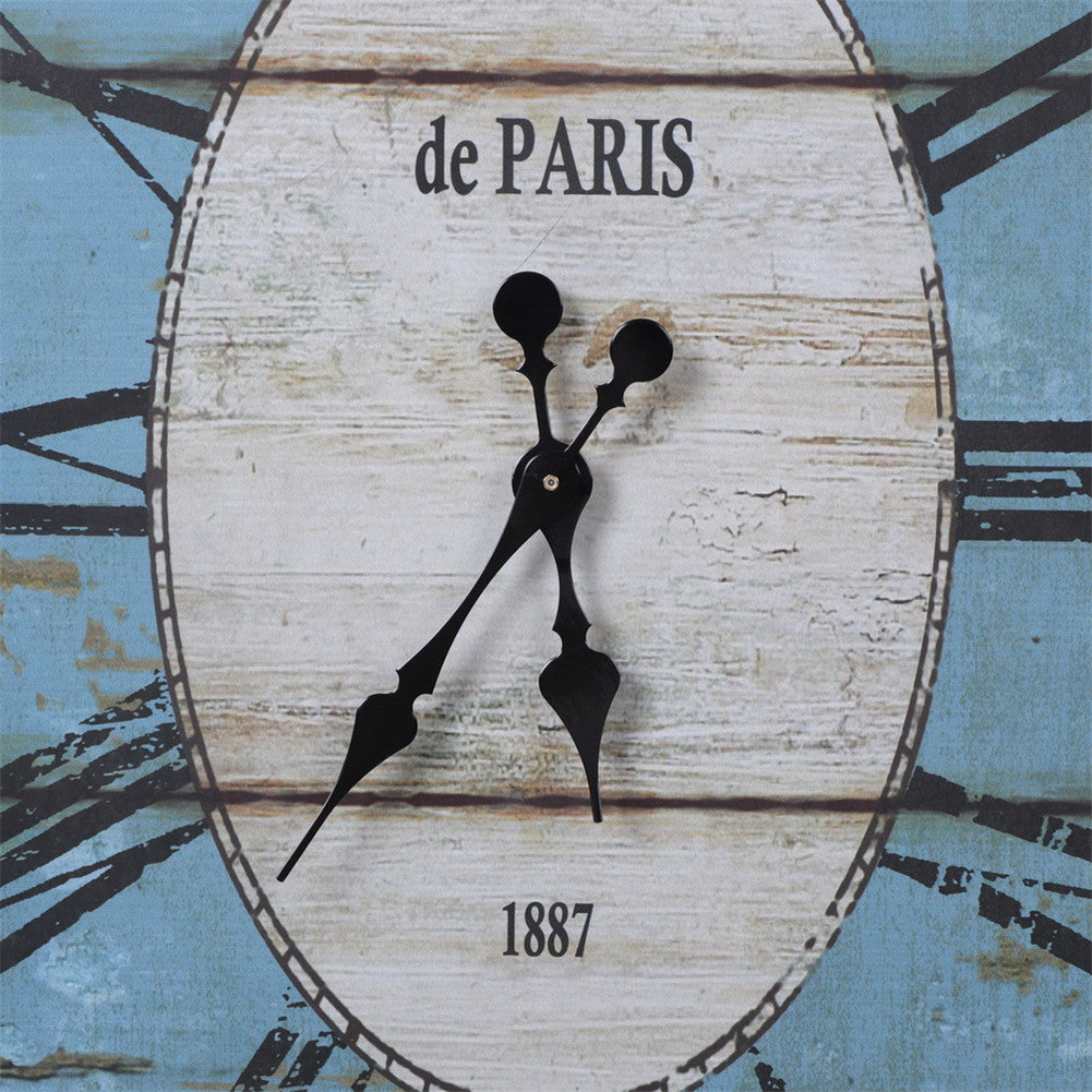 This unique clock measures 23.62 inches by 17.52 inches and is the perfect size for the kitchen, living room, or bedroom. Our rustic clock features a vintage worn blue and a vintage worn white clock face with distressed roman numerals and worn blue background for an antique farmhouse feel. The wall clock is the perfect gift for Christmas, birthdays, housewarmings, weddings, or any special occasion. Vintage wall hanging clock is battery operated and requires a single aa battery (not included)