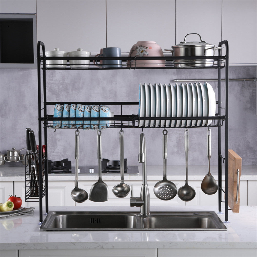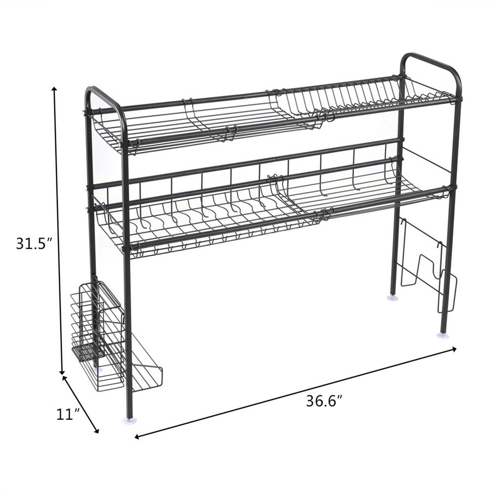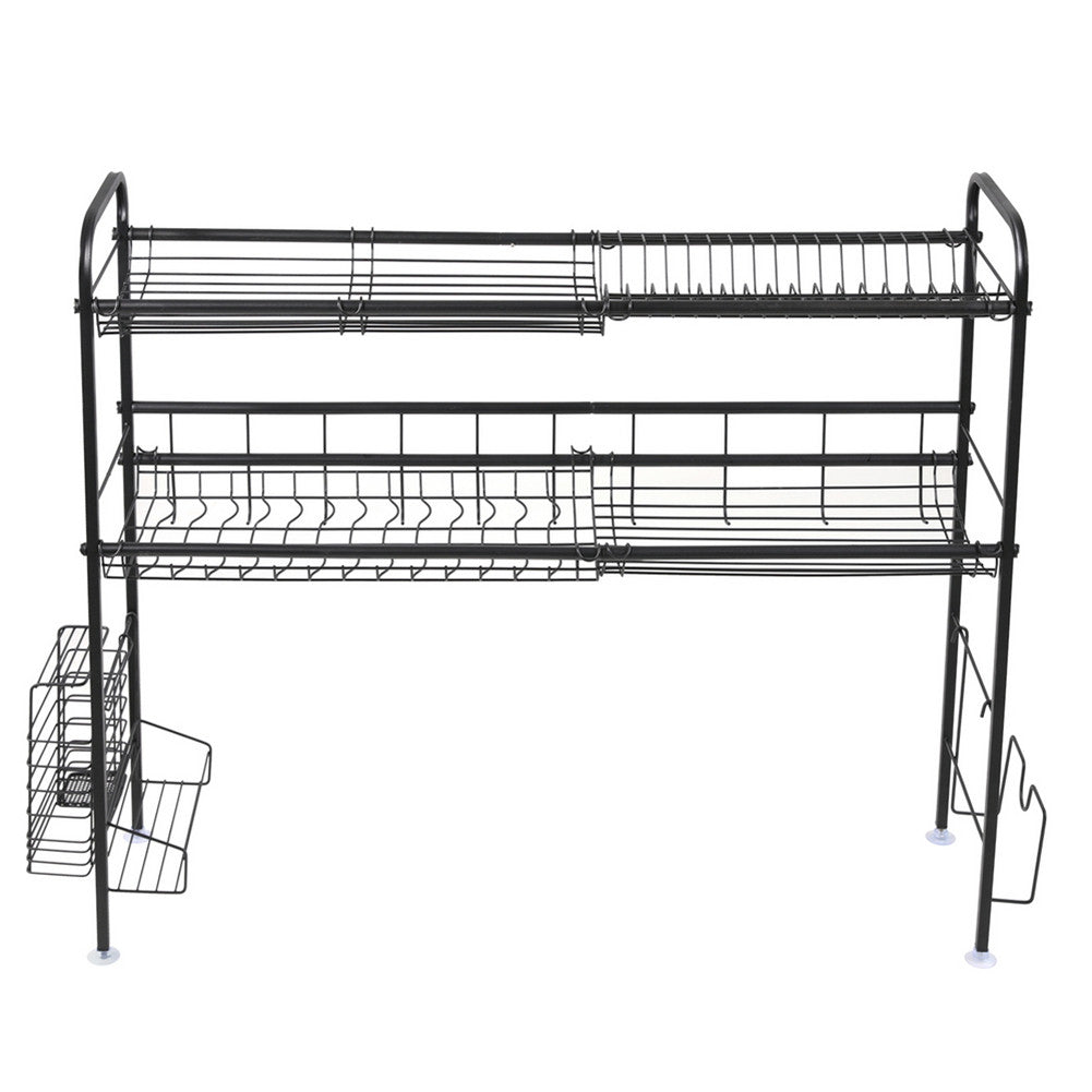RONSHIN Single Layer Bowl Rack Shelf Dish Drainer 90cm Inner Length Kitchen Organizer Black