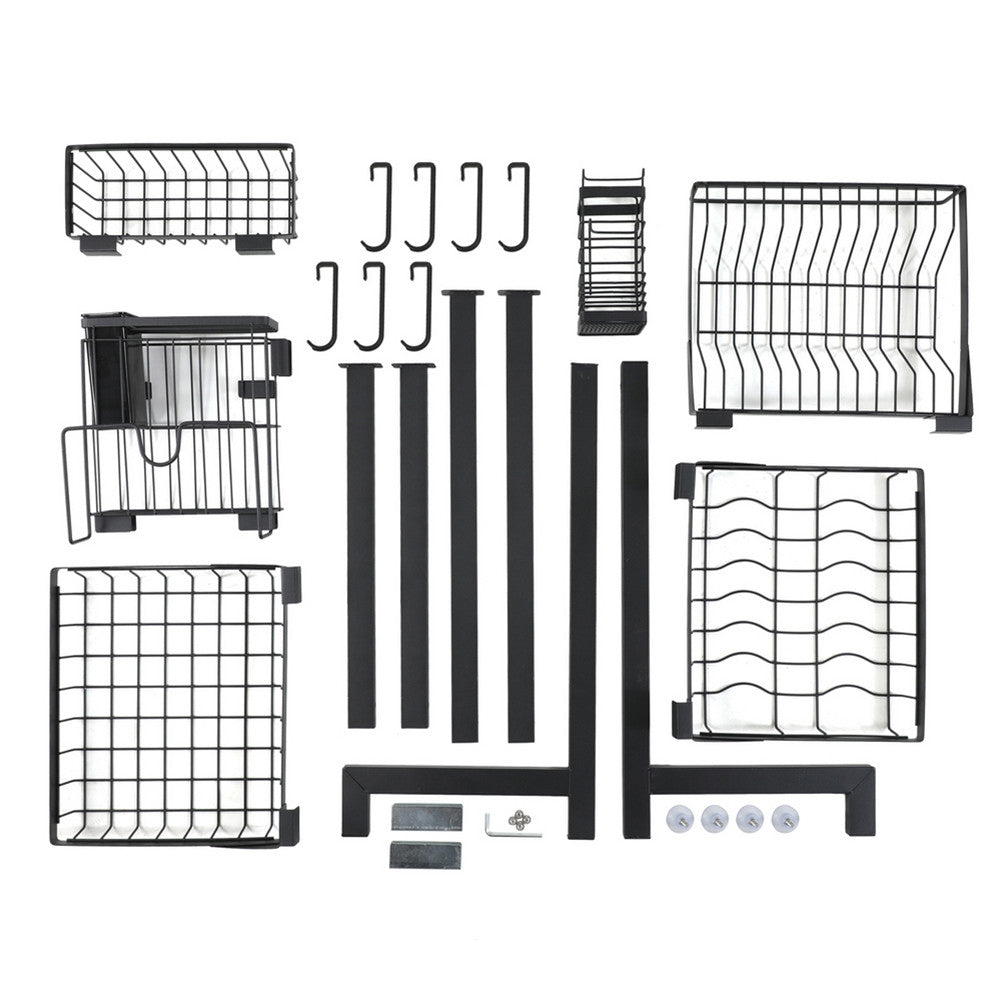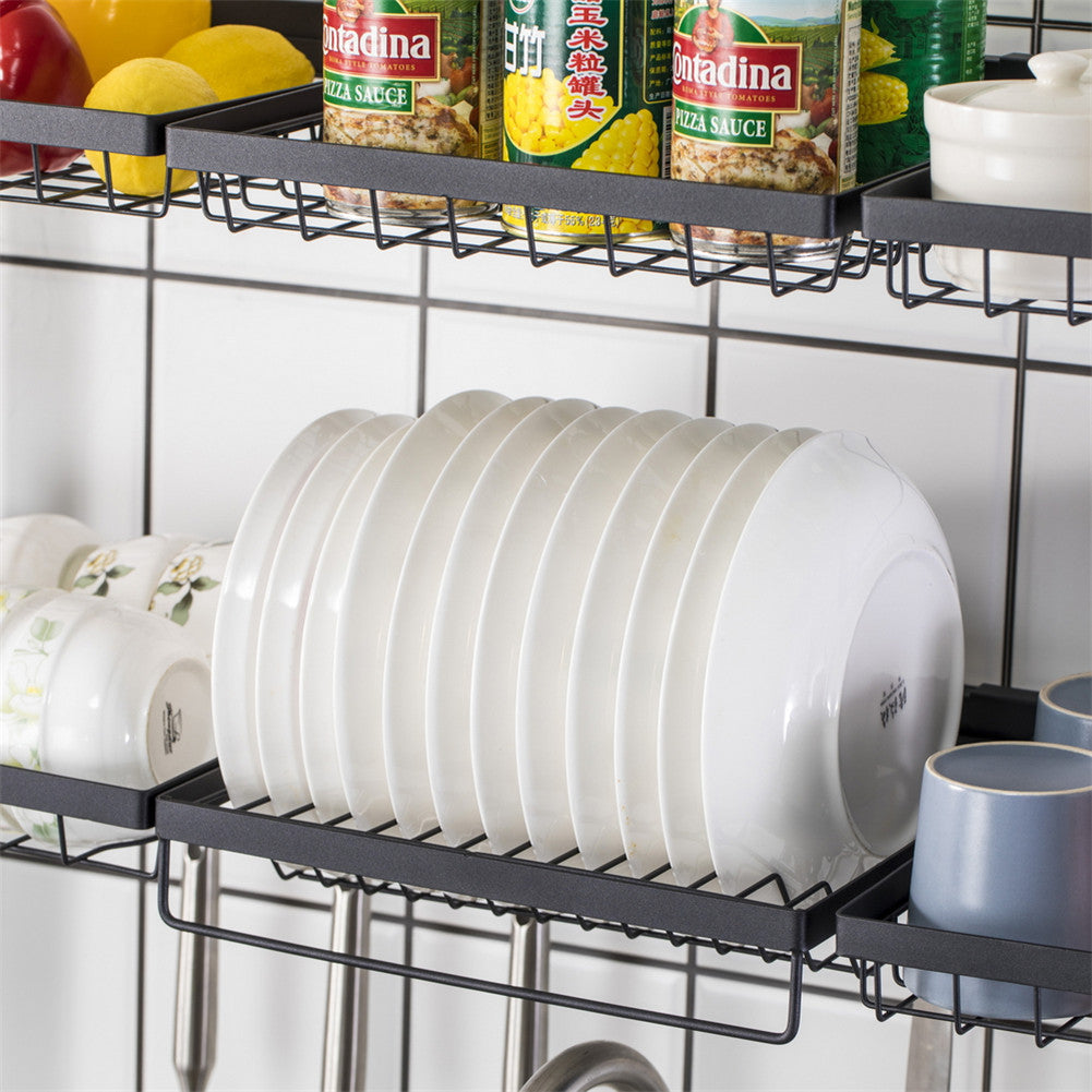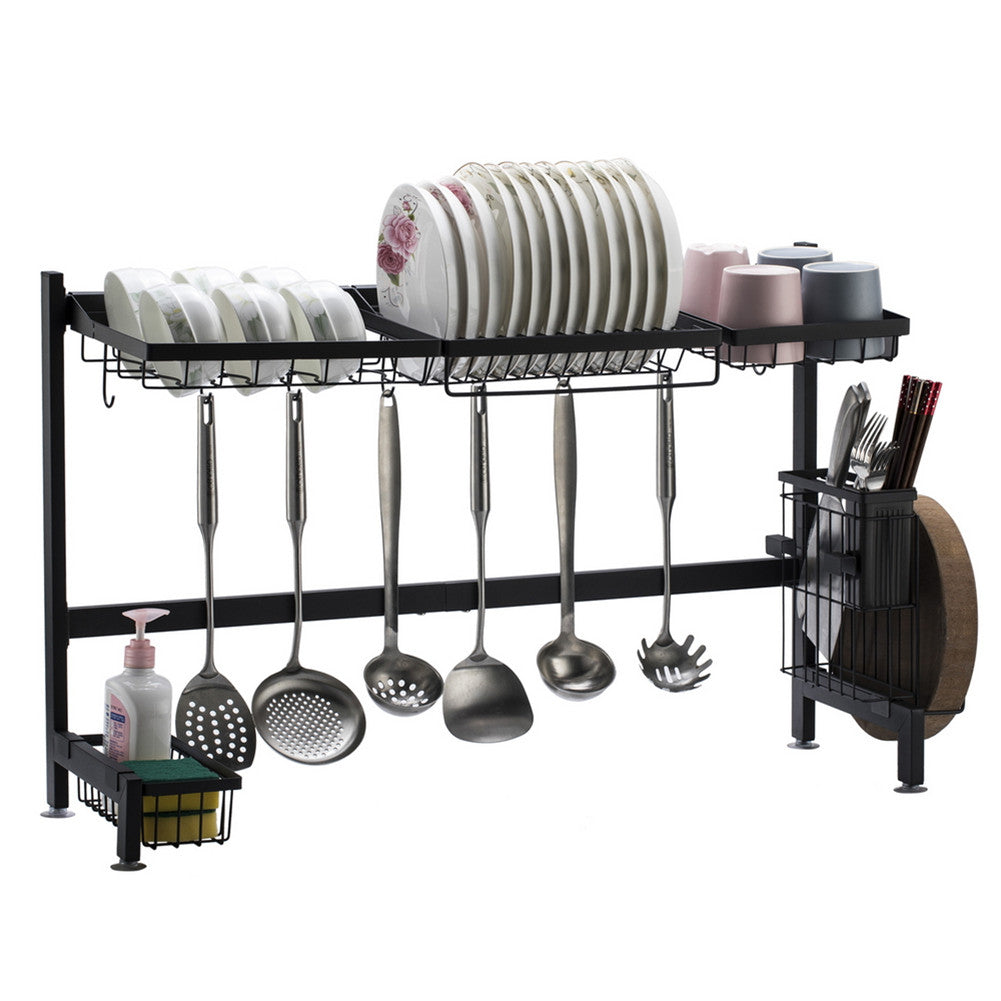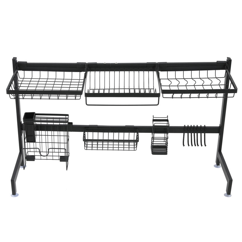 RONSHIN Single Layer Bowl Rack Shelf Dish Drainer 92cm Inner Length Kitchen Organizer Black