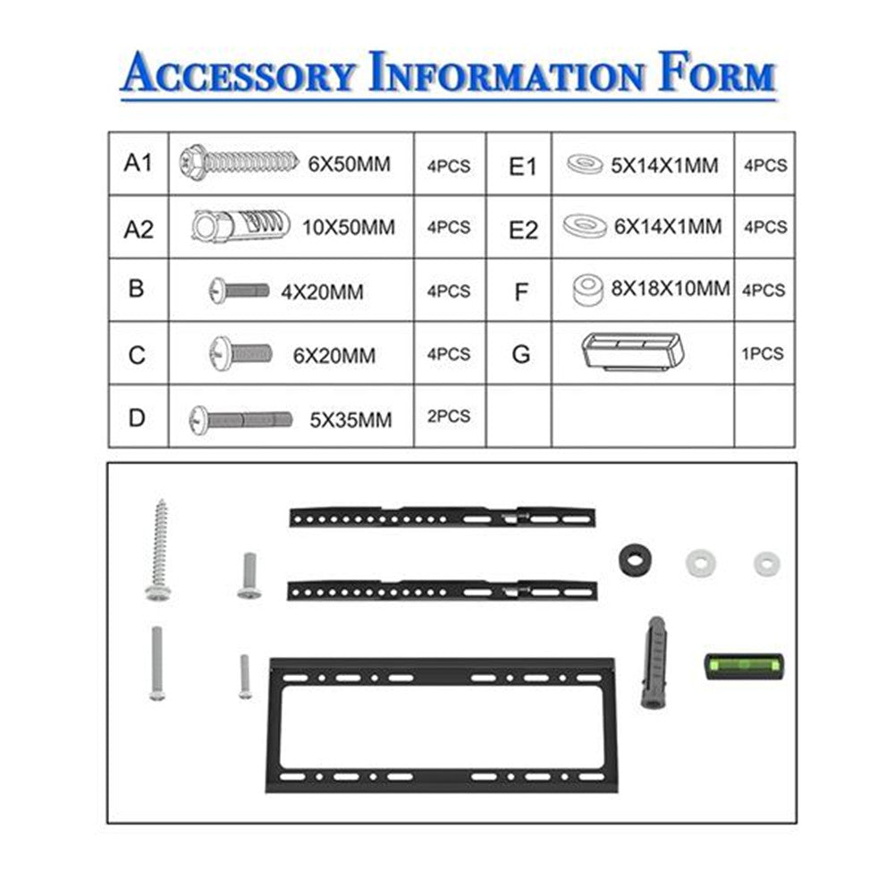 1x Standard hardware kit (The Screw kit is standard. Don't make sure fit all the TV models. Please buy one kit if do not fit)