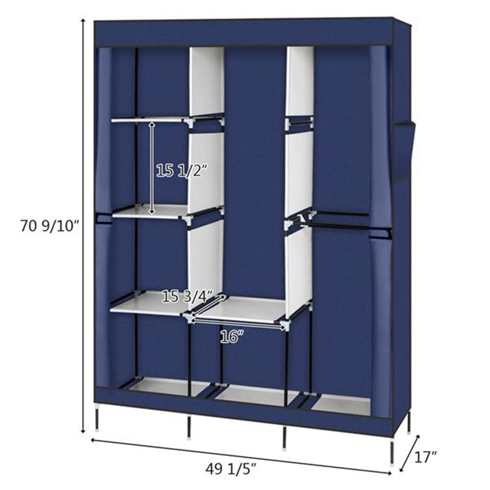 Our 71" Portable Closet Storage Organizer Clothes Wardrobe is Made from Selected Non-Woven Fabric Cover, High Quality Steel Tube and PP Plastic Connectors, Which Will Durable and Meet Your Long Term Storage Needs. The Size for The Clothes Wardrobe Makes it Suitable for Organizing Your Small Rooms and Walk-In Closet. Movable Improved Clothes Hanging Rod and 8 Storage Shelves Offers You Enough Space Both for Your Longer Outfits and Folded Clothes. Zippered Dustproof Cover Offered to Keep Your Item Away from Dust and Water-Proof Fabric Tiers are Easy to Clean. It Will Be Great Convenient and Functional. Do Not Hesitate to Buy One!