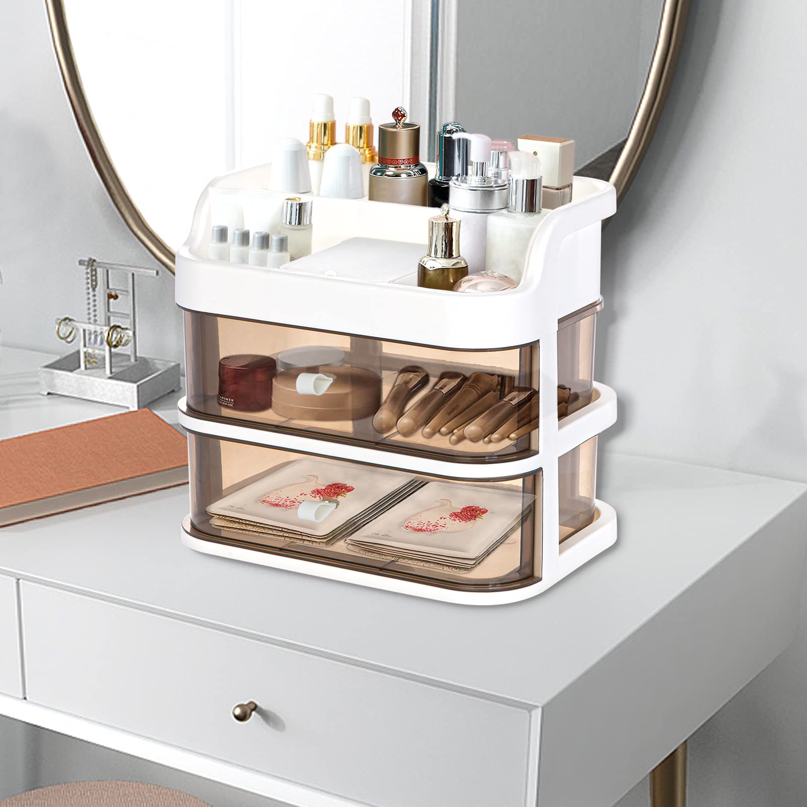 Keep makeup and accessories organized and easily accessible ¡ª Reduce clutter, save time getting ready, and gain space ¡ª Convenient slot compartments on top level keeps items protected, upright, and in place.
