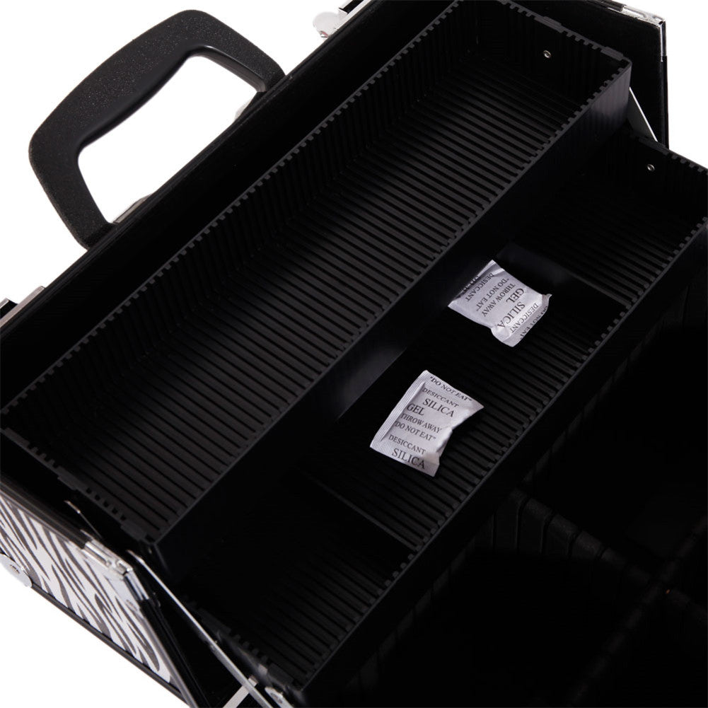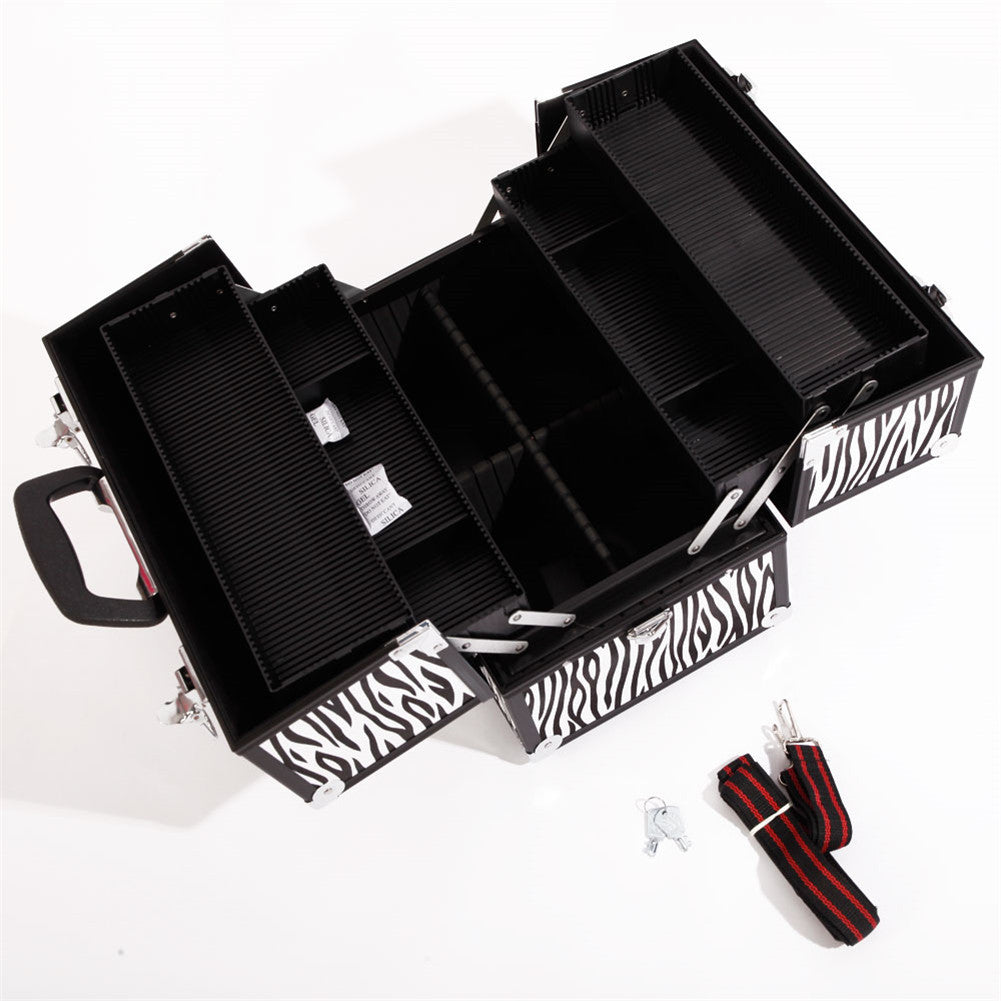 The SM-2083 Aluminum Alloy Makeup Train Case Jewelry Box Organizer is designed for makeup artists and hair stylists on the go. It is built with two accordion style fold-out compartments for neat organization of all your tools and products as well as quick access to all these items. Easy close latches secure your belongings. High quality aluminum alloy construction with reinforced steel corners features extra durability. A swivel carrying handle on the top allows for easy portability. Don't hesitate to get one!