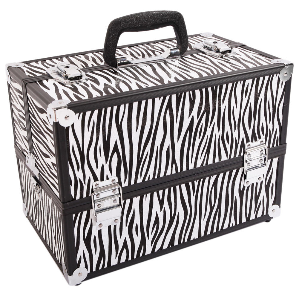 SHININGLOVE Portable Cosmetic Case White Zebra Pattern Makeup Jewelry Box