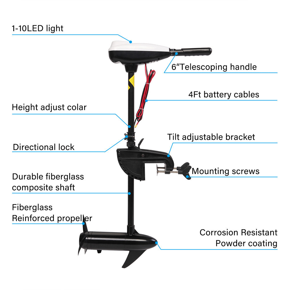 Do you want to row without effort? Here we recommend our 24V Marine Electric Propeller 92CM Glass Fiber Main Pole 86L to you, instead of hand rowing to make it easier for you. It can meet your water needs, such as recreation, outdoor fishing, rescue and salvage.