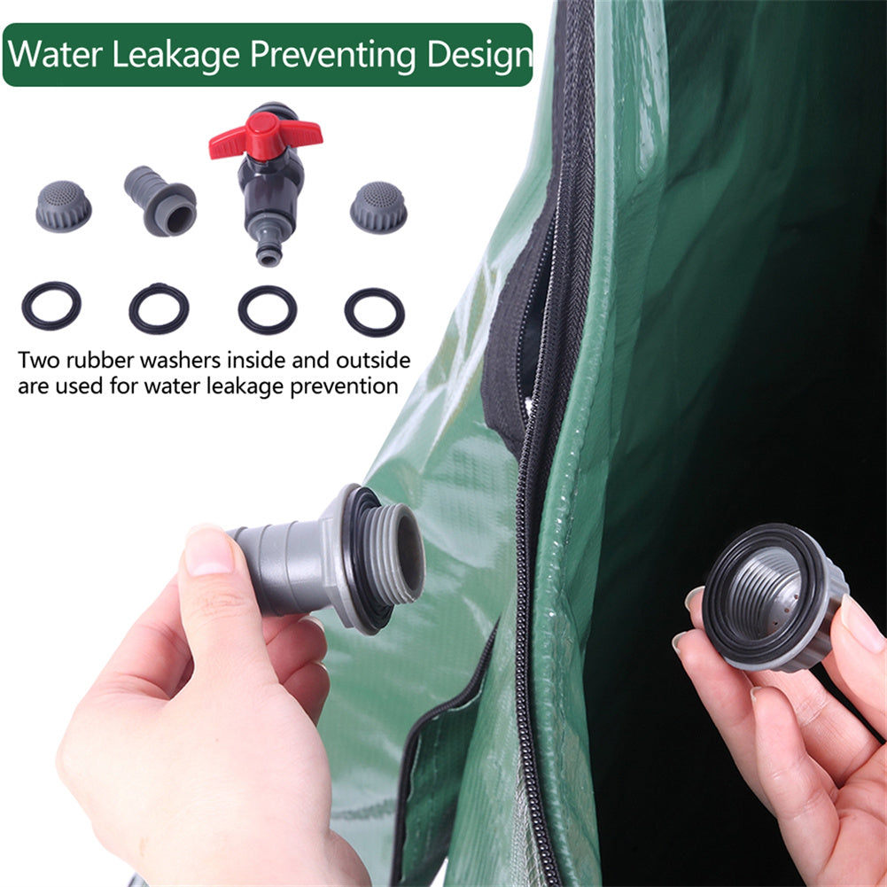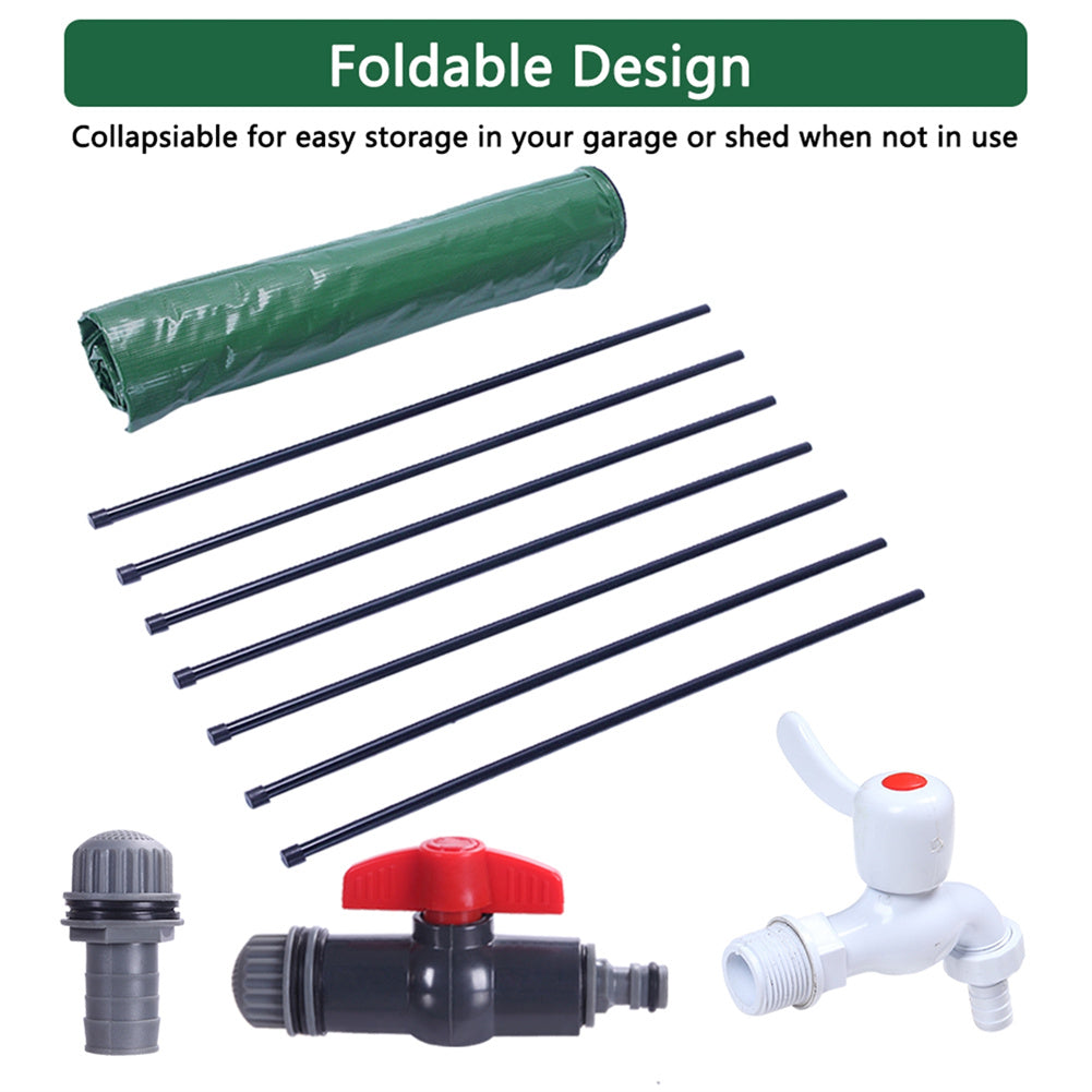 Rain water is ideal for a multitude of applications including biodynamic and organic vegetable gardens, planter beds for botanicals, indoor tropical plants like ferns and orchids, and for cleaning household windows. Our 100 Gallon Folding Rain Barrel will be an indispensable tool for you to collect rain water. Simply place the rain barrel beneath a down spout to capture natural rain water. This rain barrel features a foldable barrel design which makes it easy to store and carry. Besides, its green surface naturally fits in with your backyard sight. Zippered mesh cover allows water to collect while blocking leaves and debris, it is also easy to remove for cleaning and maintenance. Connect a hose to the tap on the bottom or scoop from the top with a watering can. Don't hesitate, come and buy one !