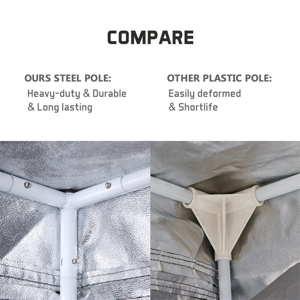 Material: Outside: Oxford Cloth, Inside: PEVA High Reflective Silver Aluminum Foil, Frame: Iron