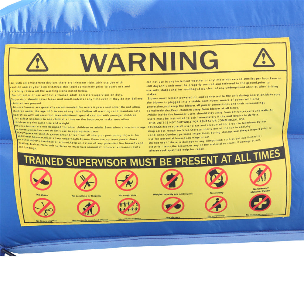 --Durable stitching and extra thick jump and slide area. The inflatable trampoline can easily accommodate 3 children at a time with a maximum weight of 250 lbs.