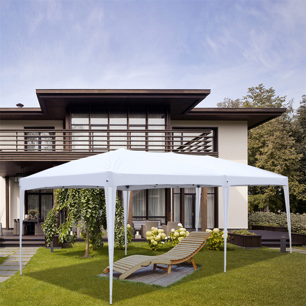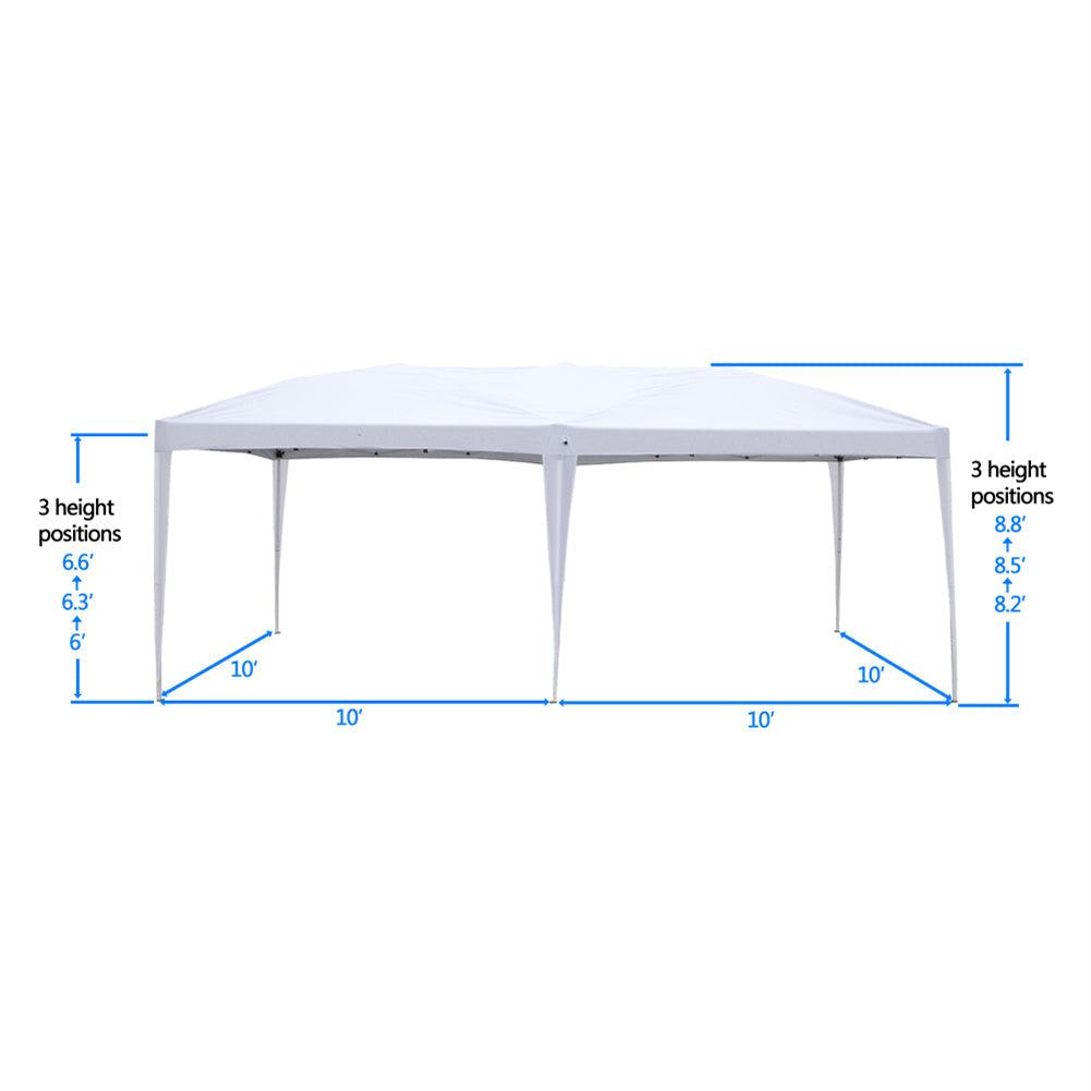'--Button design, beautiful, protects hands during installation--There are air holes on the edge of the top cloth for fixing the product with a drawstring--Other sellers can only tie the rope to the four corners and fix it. Our products can be fastened with drawstrings on each side except the four corners--Three-level adjustable height--The top cloth corner is reinforced design, using new plastic parts--Dimensions: (20 x 10 x 8.5) ft/(600 x 300 x 250) cm (L x W x H)