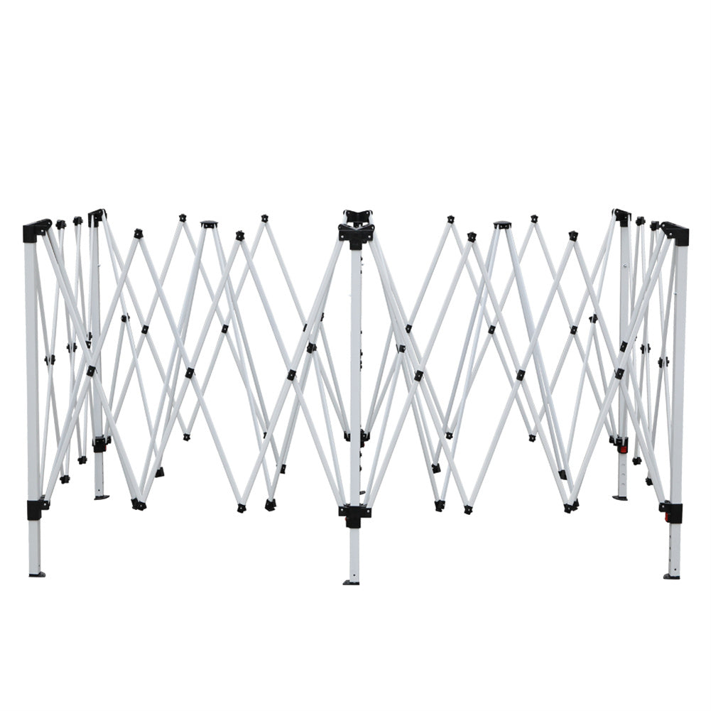 '--Button design, beautiful, protects hands during installation--There are air holes on the edge of the top cloth for fixing the product with a drawstring--Other sellers can only tie the rope to the four corners and fix it. Our products can be fastened with drawstrings on each side except the four corners--Three-level adjustable height--The top cloth corner is reinforced design, using new plastic parts--Dimensions: (20 x 10 x 8.5)ft / (600 x 300 x 250)cm (L x W x H)