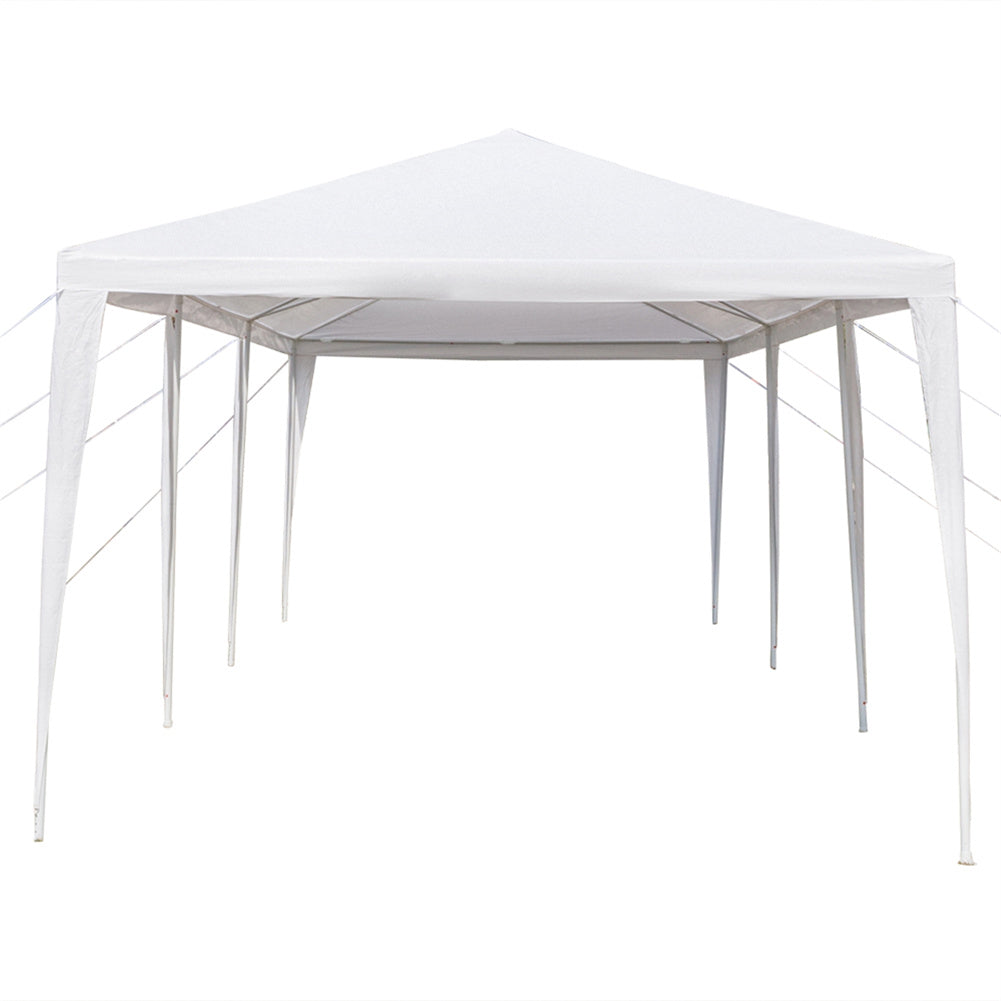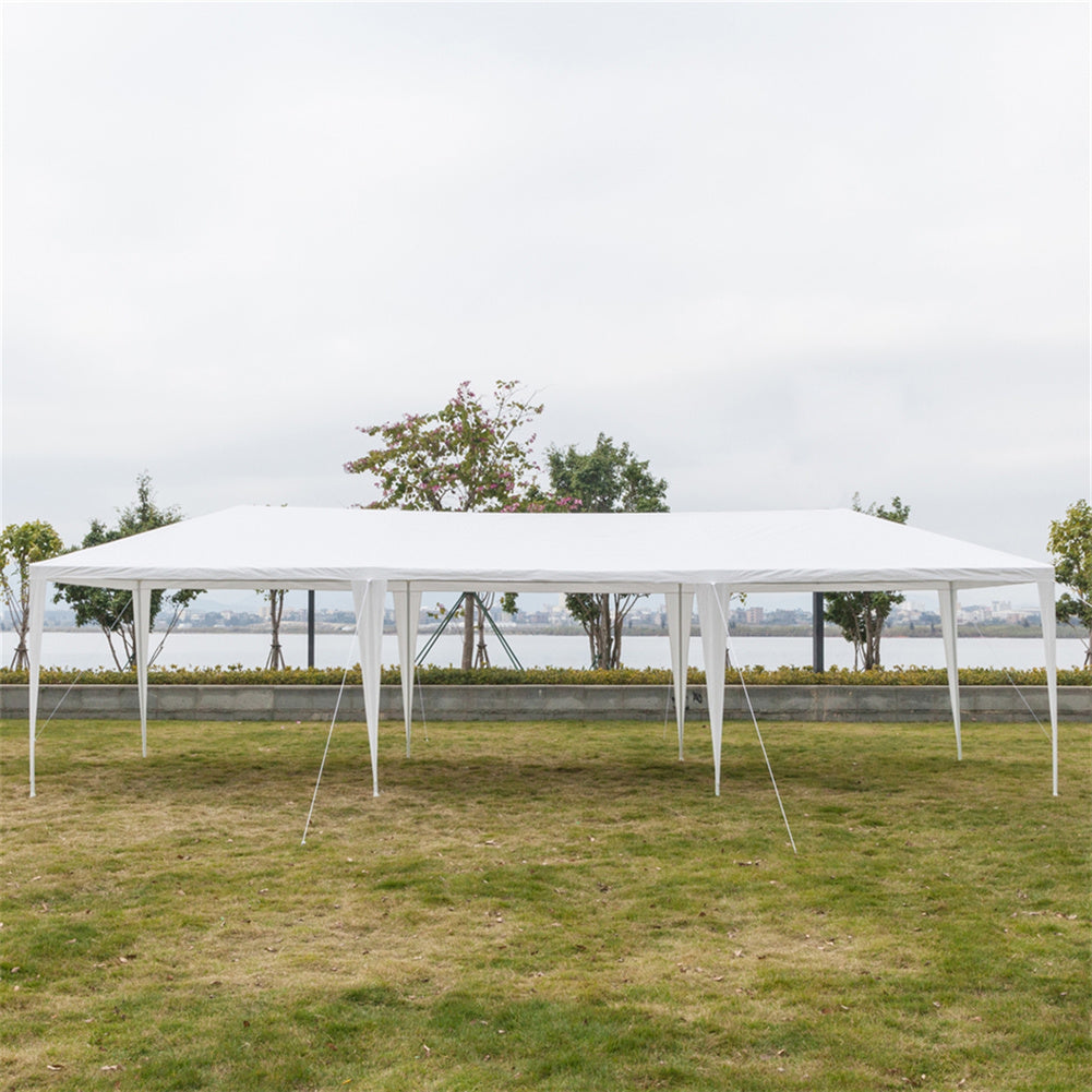 '--Assembled tent, consisting of necessary accessories--High-grade PE cloth top and iron pipe, exquisite workmanship and reasonable design, Made of 5 sides--Outstanding waterproof performance, can be used outdoors--Suitable for parties such as weddings, camping, parking, etc.--Temporary use, not suitable for daily use--Easy to assemble, The spiral interface between the tubes makes the overall frame more stable--Dimensions: (30 x 10 x 8.5)" / (900 x 300 x 260)cm(L x W x H)