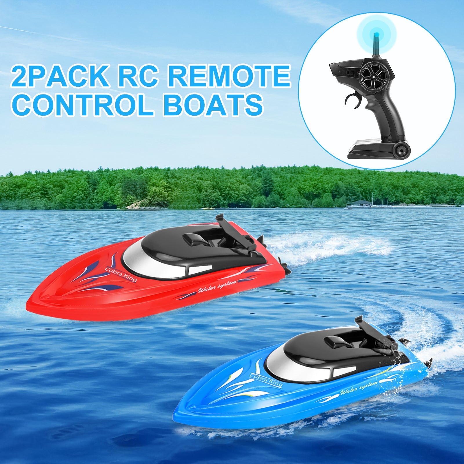 THINKMAX 2PACK 10km/H 2.4G High Speed Remote Control Boats (Blue+Red)