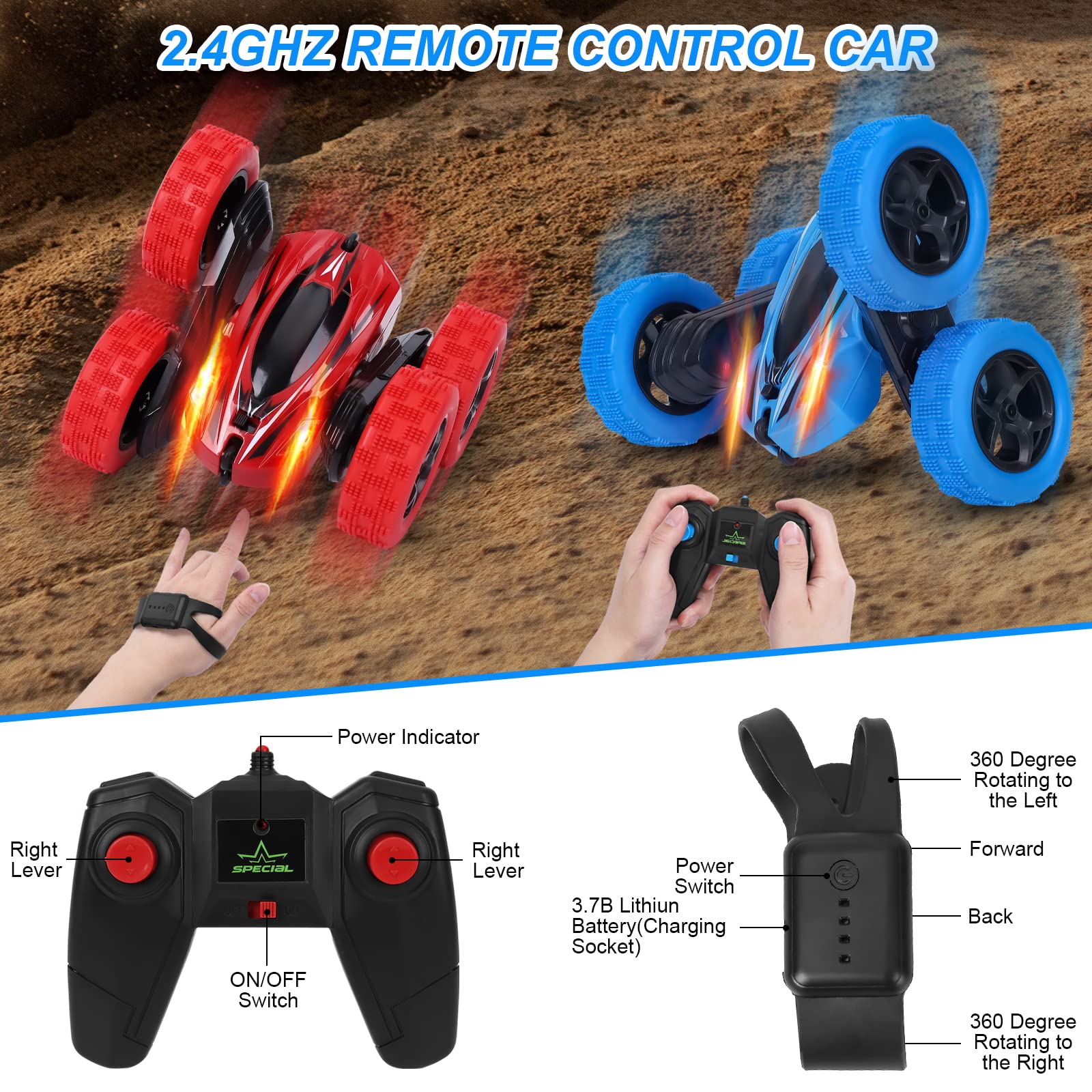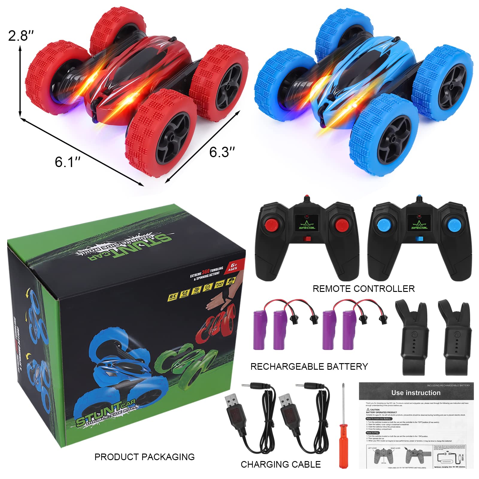 THINKMAX 2pack RC Stunt Car Remote Control Car 1165A 360 Rotating Vehicle Blue & Red