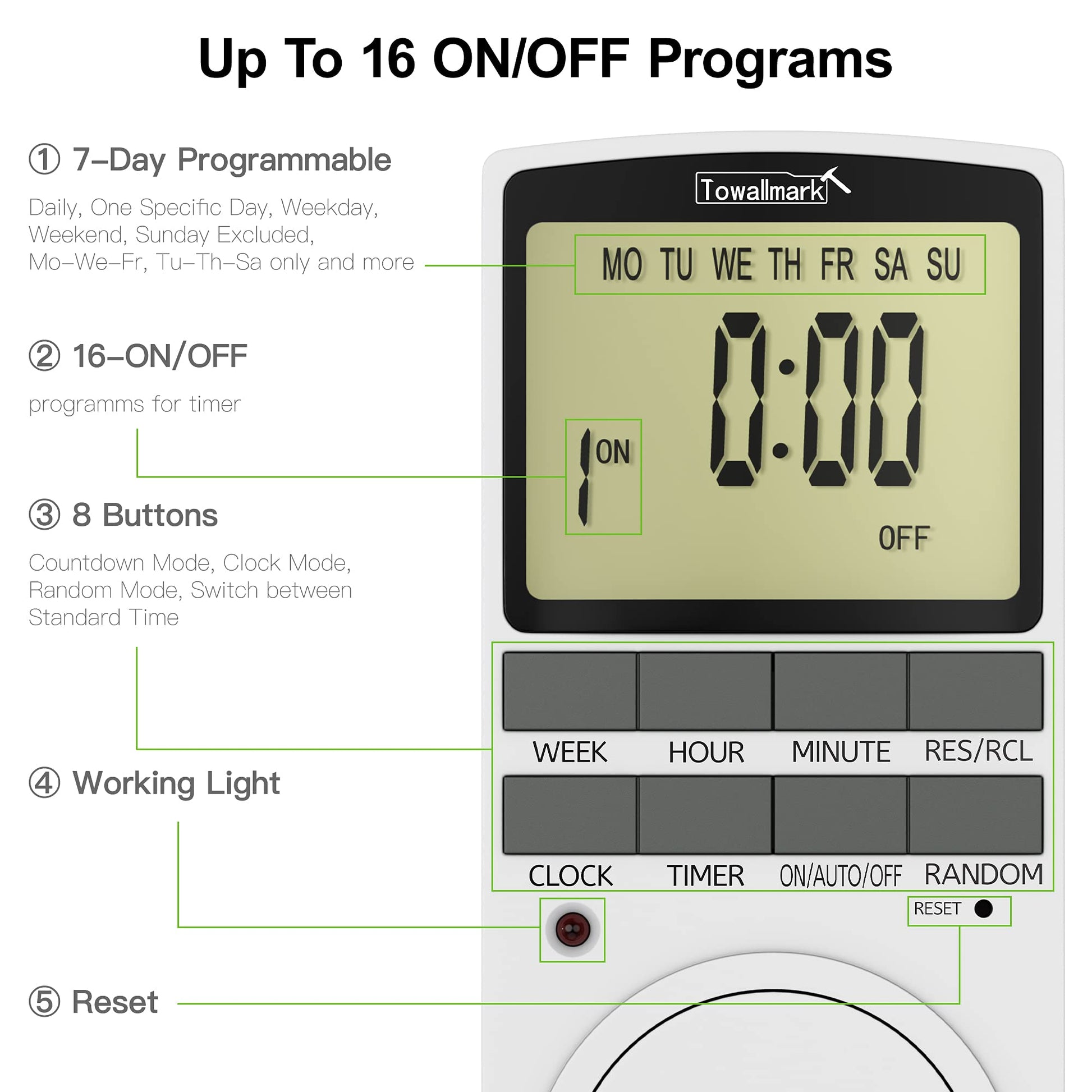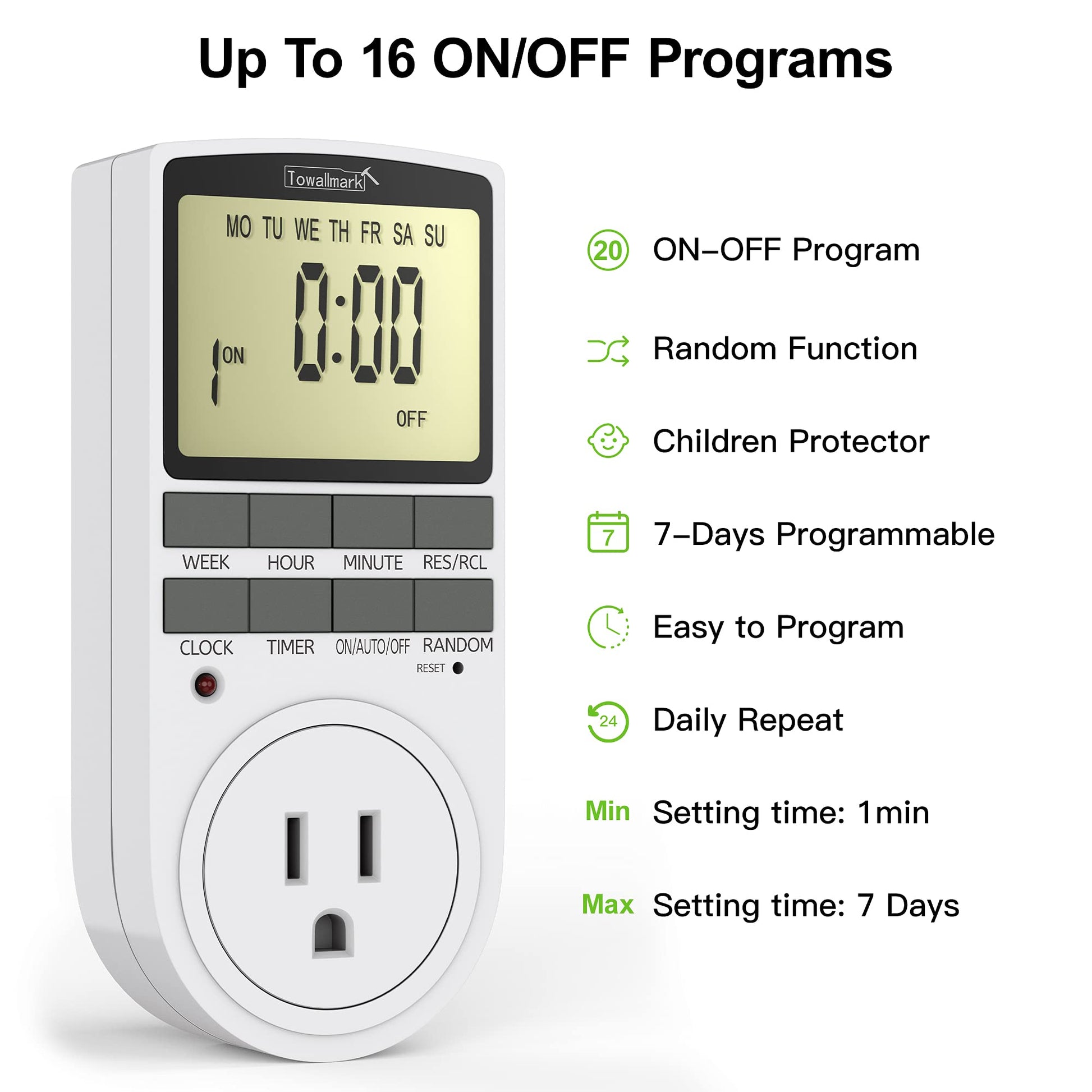 TOWALLMARK Digital Timer Outlet Indoor Plug-in Electric Timer
