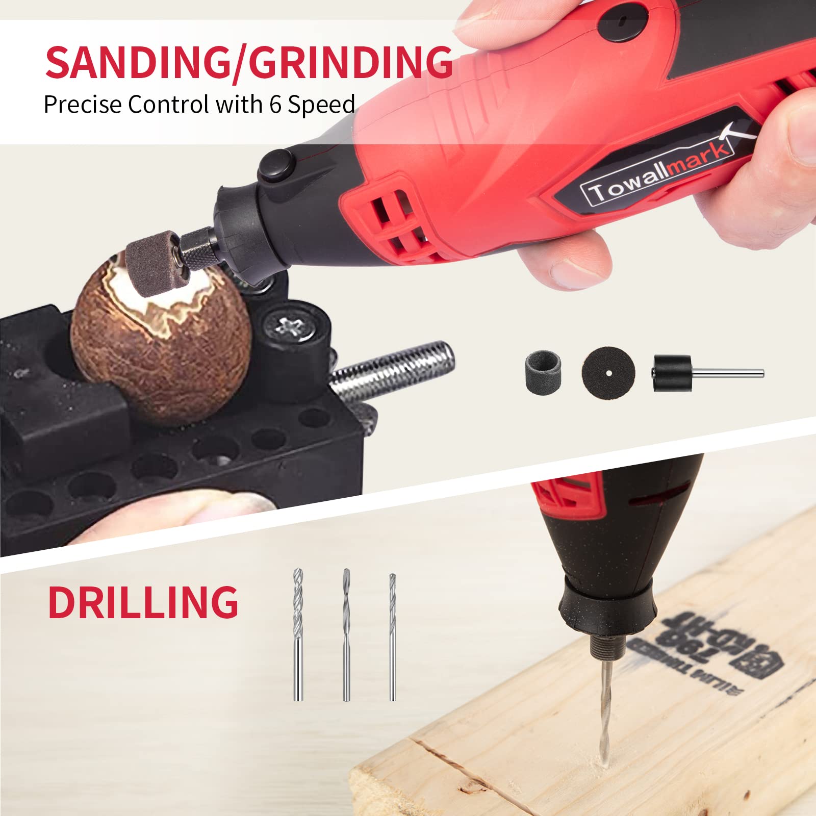 TOWALLMARK 88pcs Rotary Tool Kit 1.5Amp Variable Speed with Flex Shaft DIY Projects