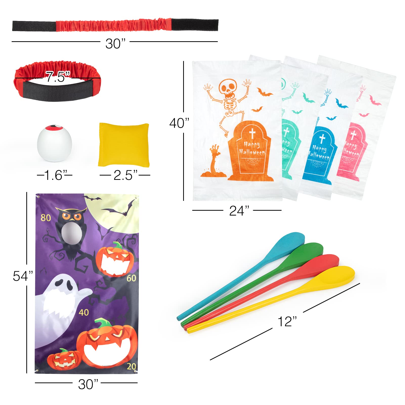 Received this for our upcoming Halloween celebration, and it exceeded expectations! The quality is impressive for the price sturdy eyeballs, spoons, and durable bags. The bean bag game is bigger than expected, perfect for outdoor fun.