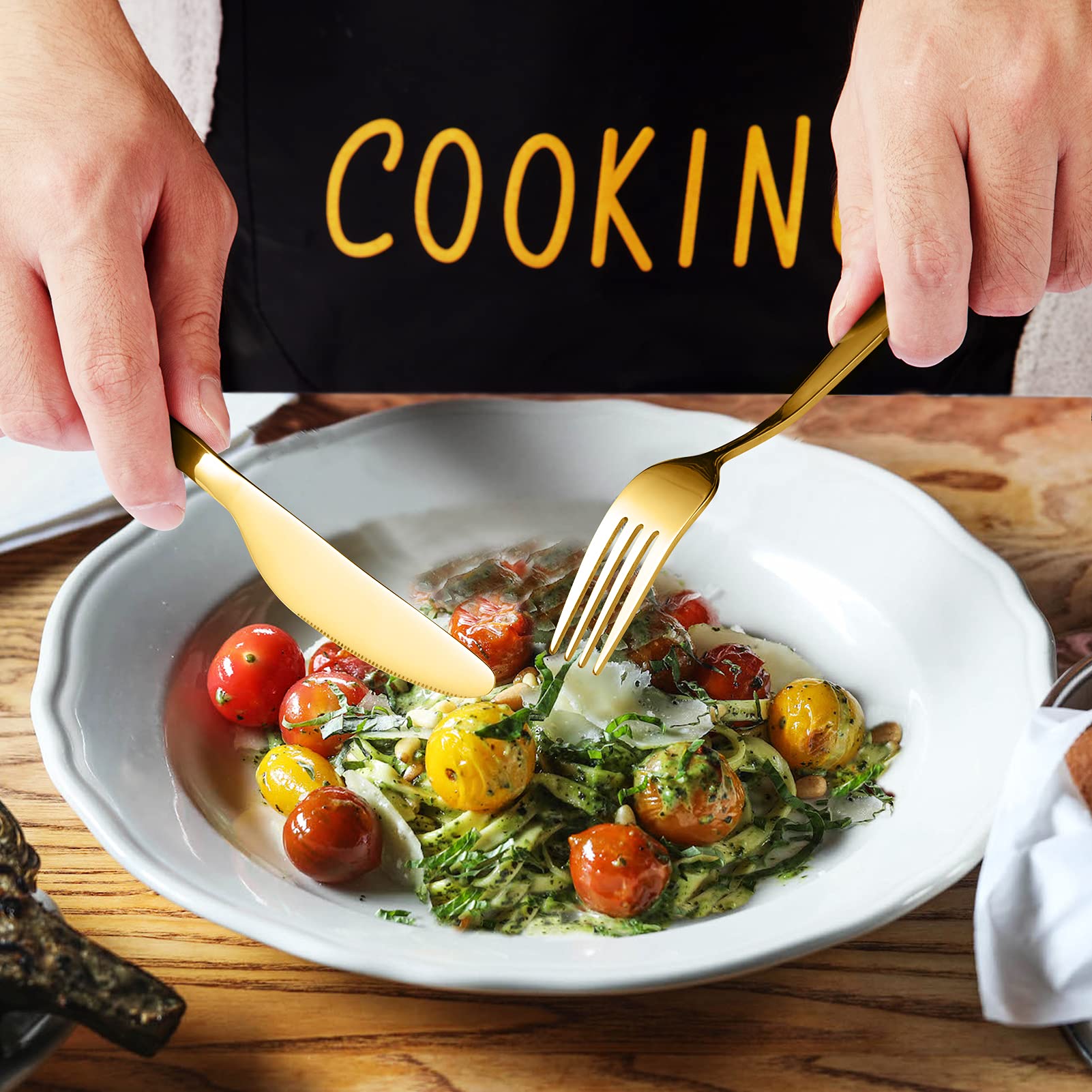 WHIZMAX 20 Piece Stainless Steel Kitchen Flatware Set - Gold