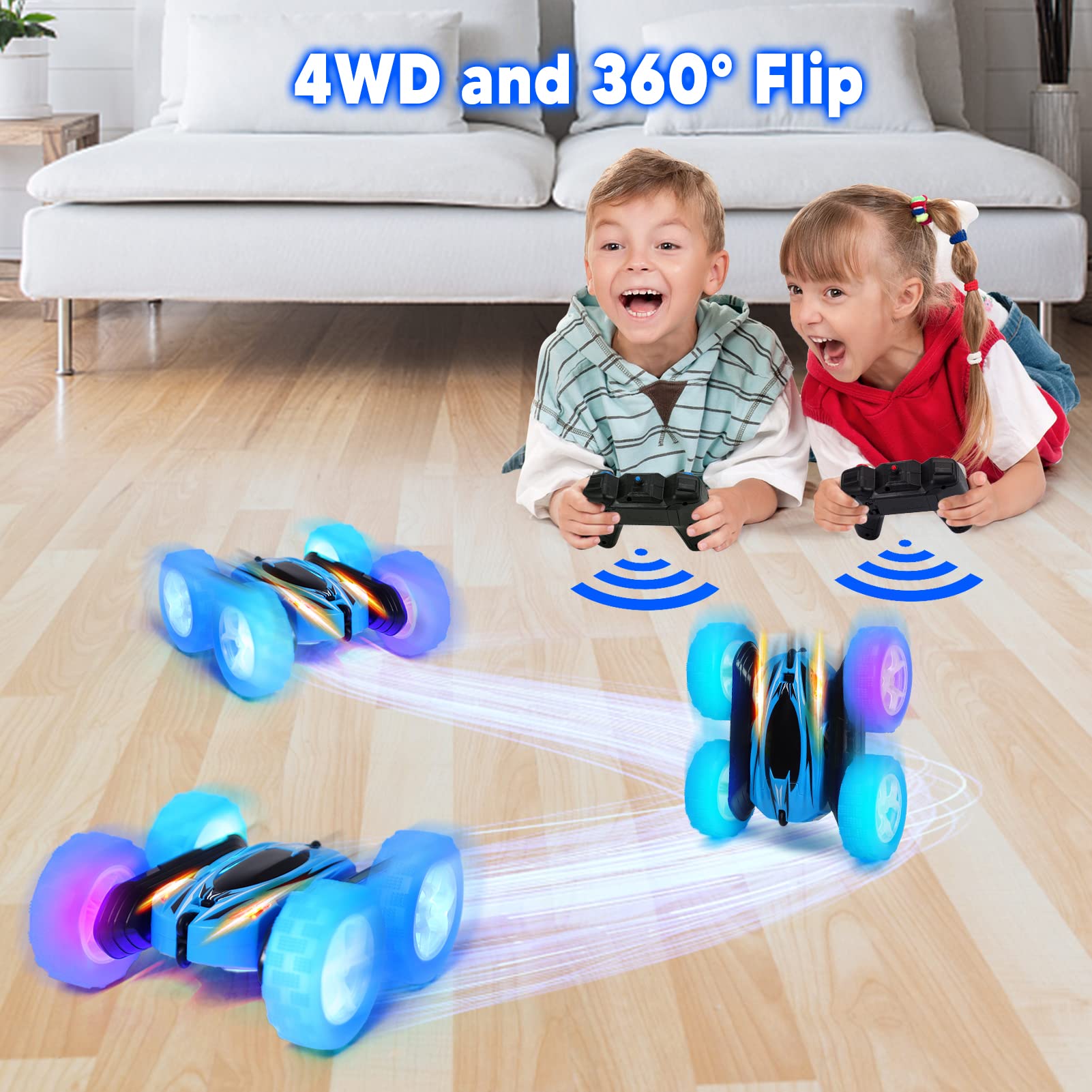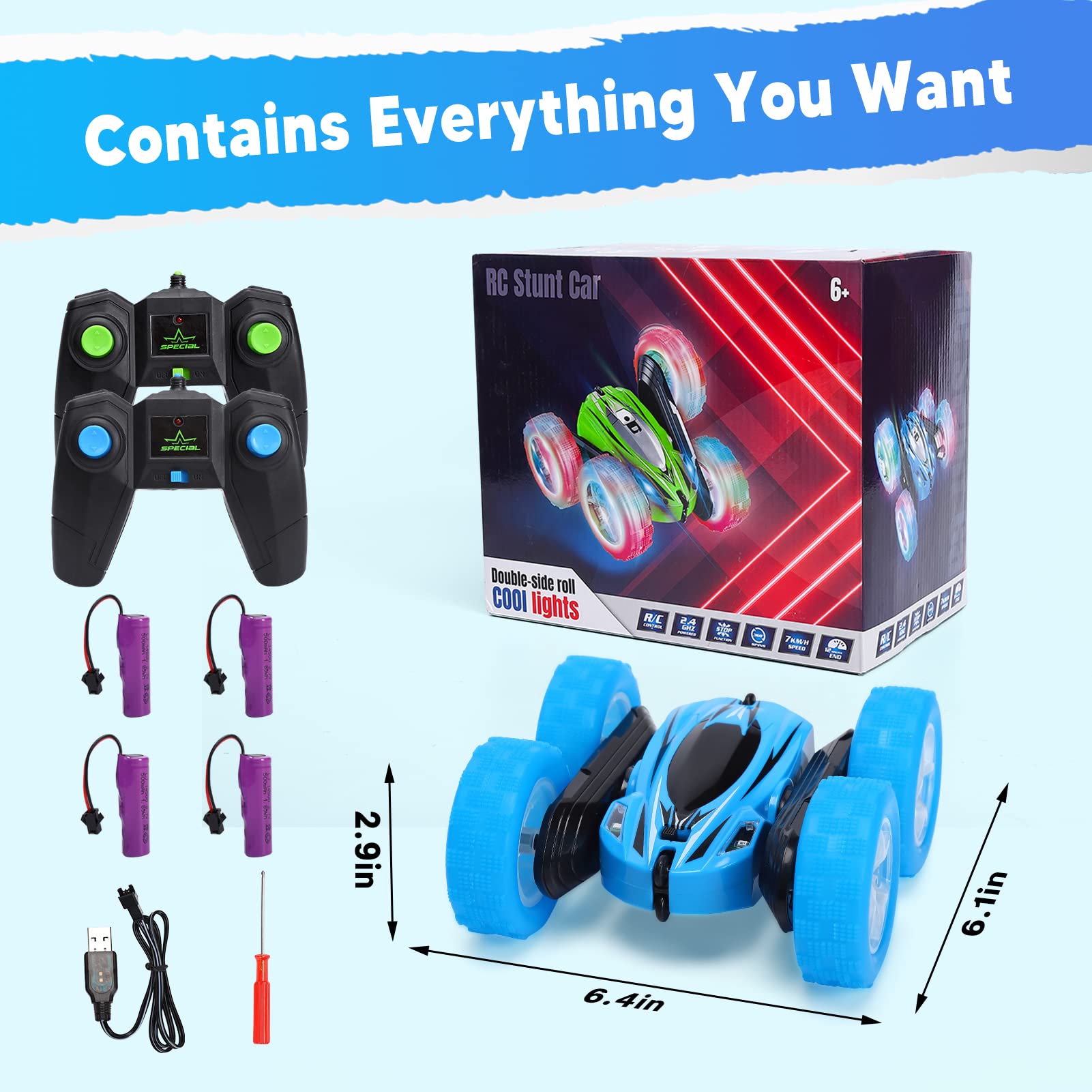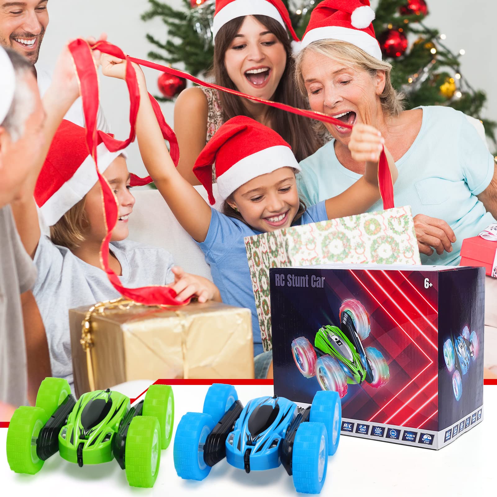 WHIZMAX 2PACK RC Stunt Car Remote Control Car with Wheel Lights Blue+Green