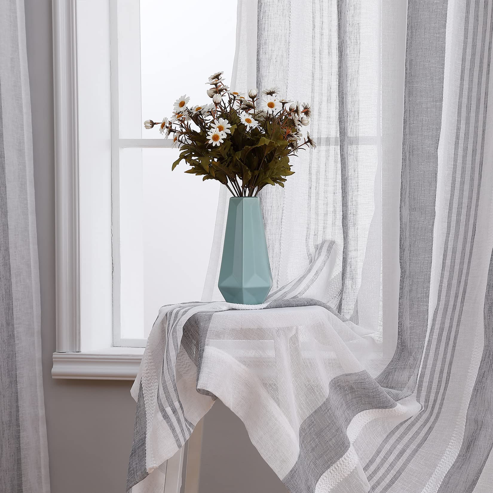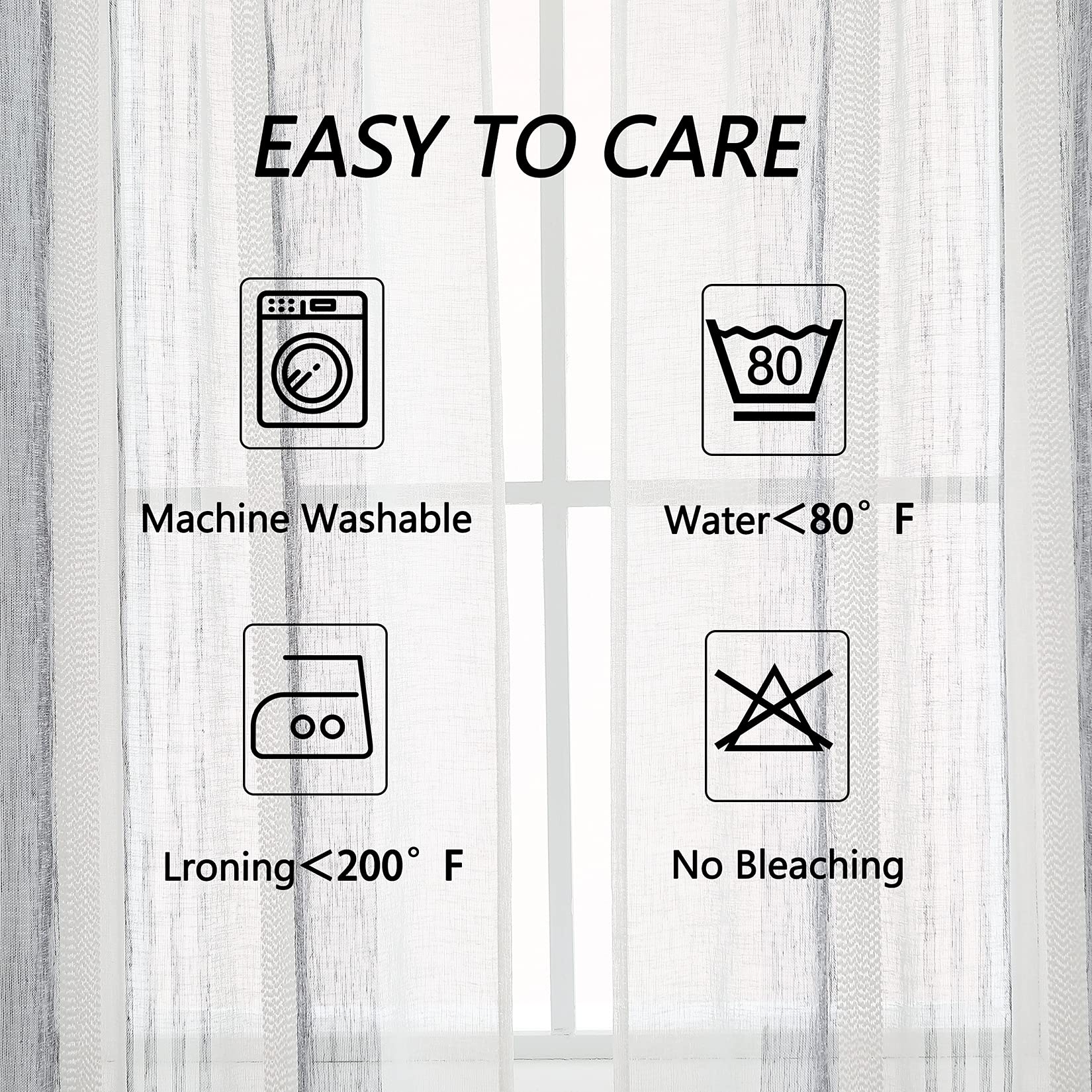 Our sheer curtains are made of premium faux linen textured fabric allows the curtains natural down, the yarn dyed weaving technology makes a double sided fabric, brings you the elegant and natural feeling, adds comfortable atmosphere into your room.