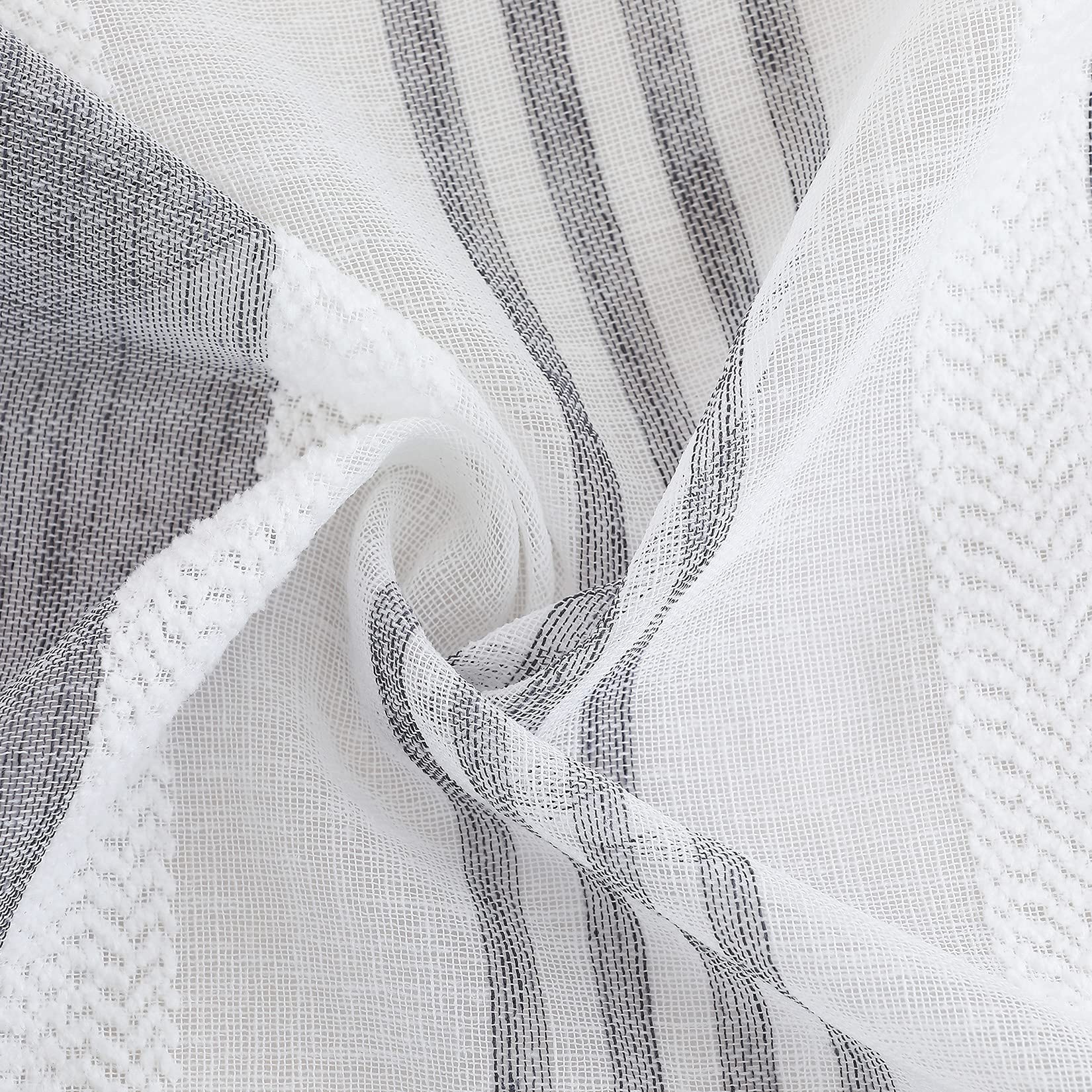 Sheer style effectively blocks harsh light entering room, let the natural light filtering, allows the room to have adequate light in while offers you with enough privacy. These sheers combine boucle and linen stripe style, simple but elegant, short tier curtains provide a modern look to your room.