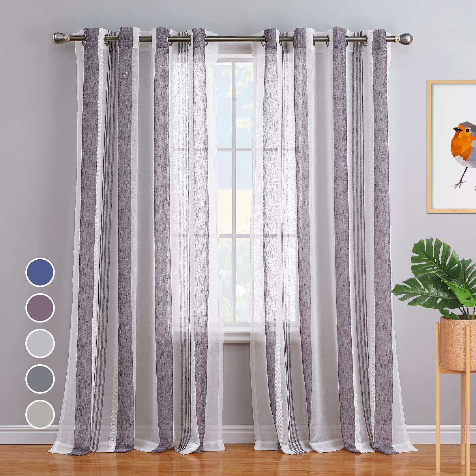 WHIZMAX 52 inches W Sheer Curtains for Living Room Bedroom Purple 52 inches W x54 inches L