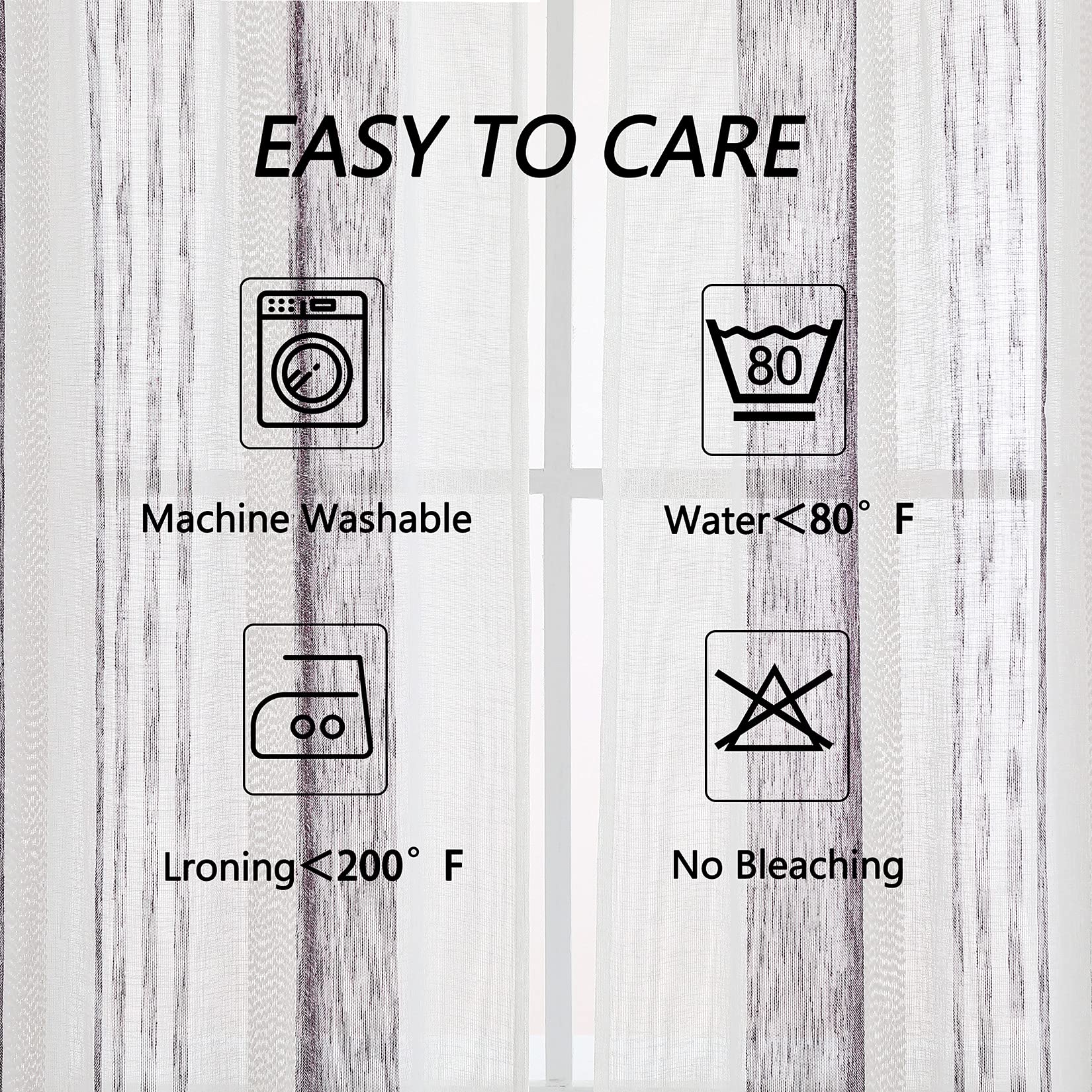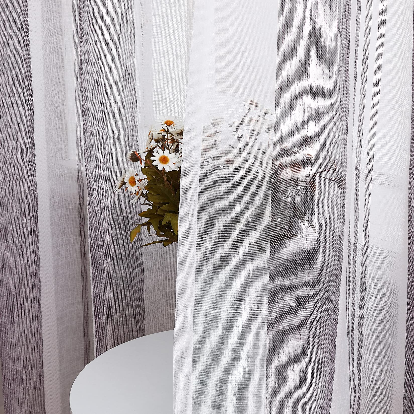 Our sheer curtains are made of premium faux linen textured fabric allows the curtains natural down, the yarn dyed weaving technology makes a double sided fabric, brings you the elegant and natural feeling, adds comfortable atmosphere into your room.