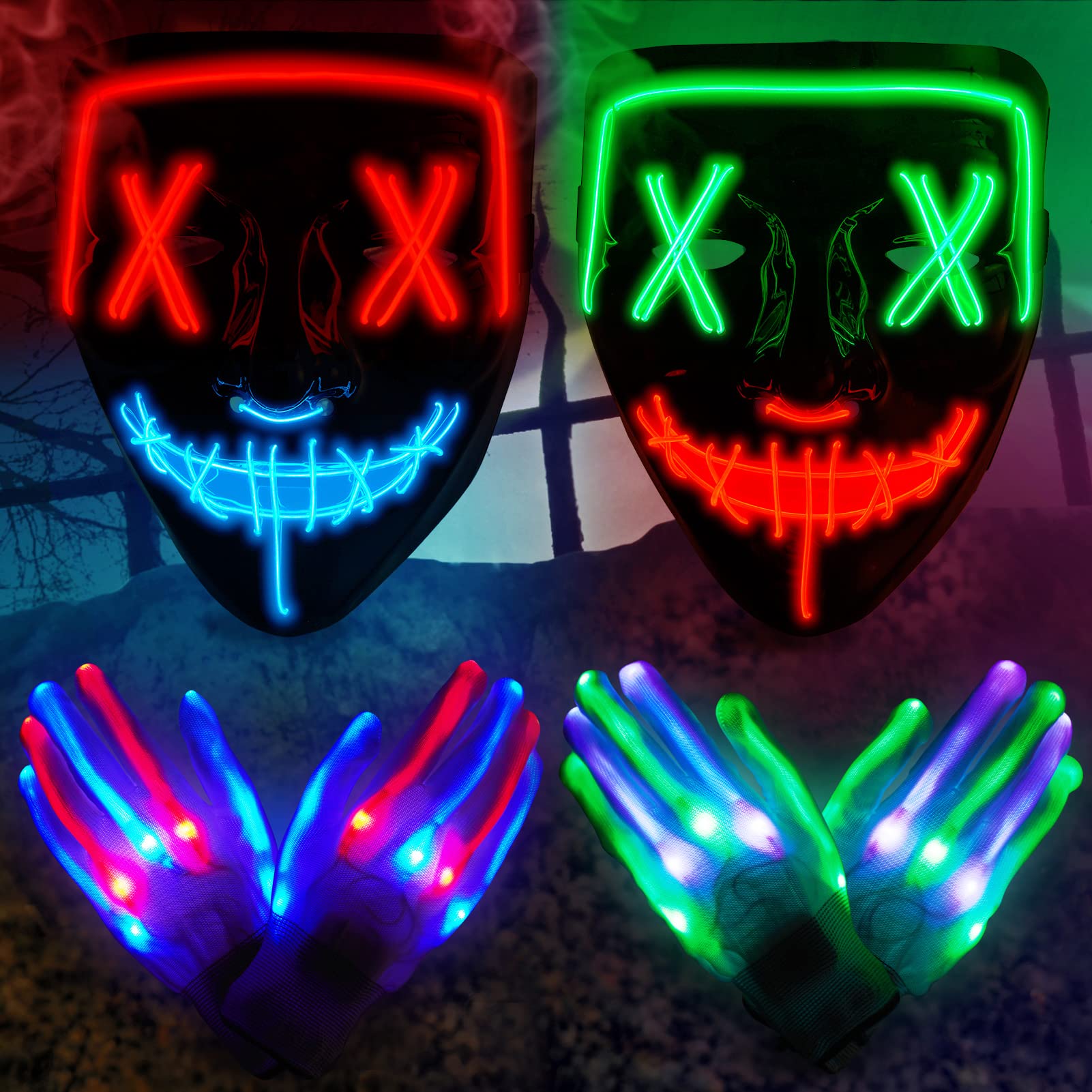 PARTY FAVORS TOYS---The led light up mask and led light gloves are suitable for Festival Cosplay Halloween Costume Halloween Festival Party,You will be the most attractive person in this party.