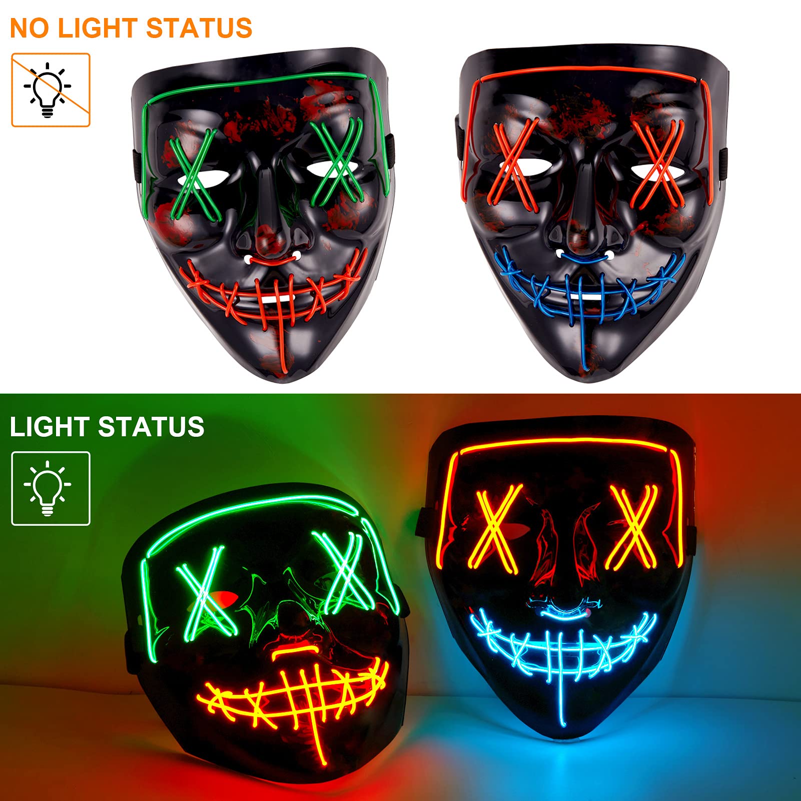 SAFETY MATERIALS-- Halloween Masks are made of premium PVC and EL cold light wire ,No inferior plastic smell, no pungent smell, can be worn with peace of mind, safe for humans.