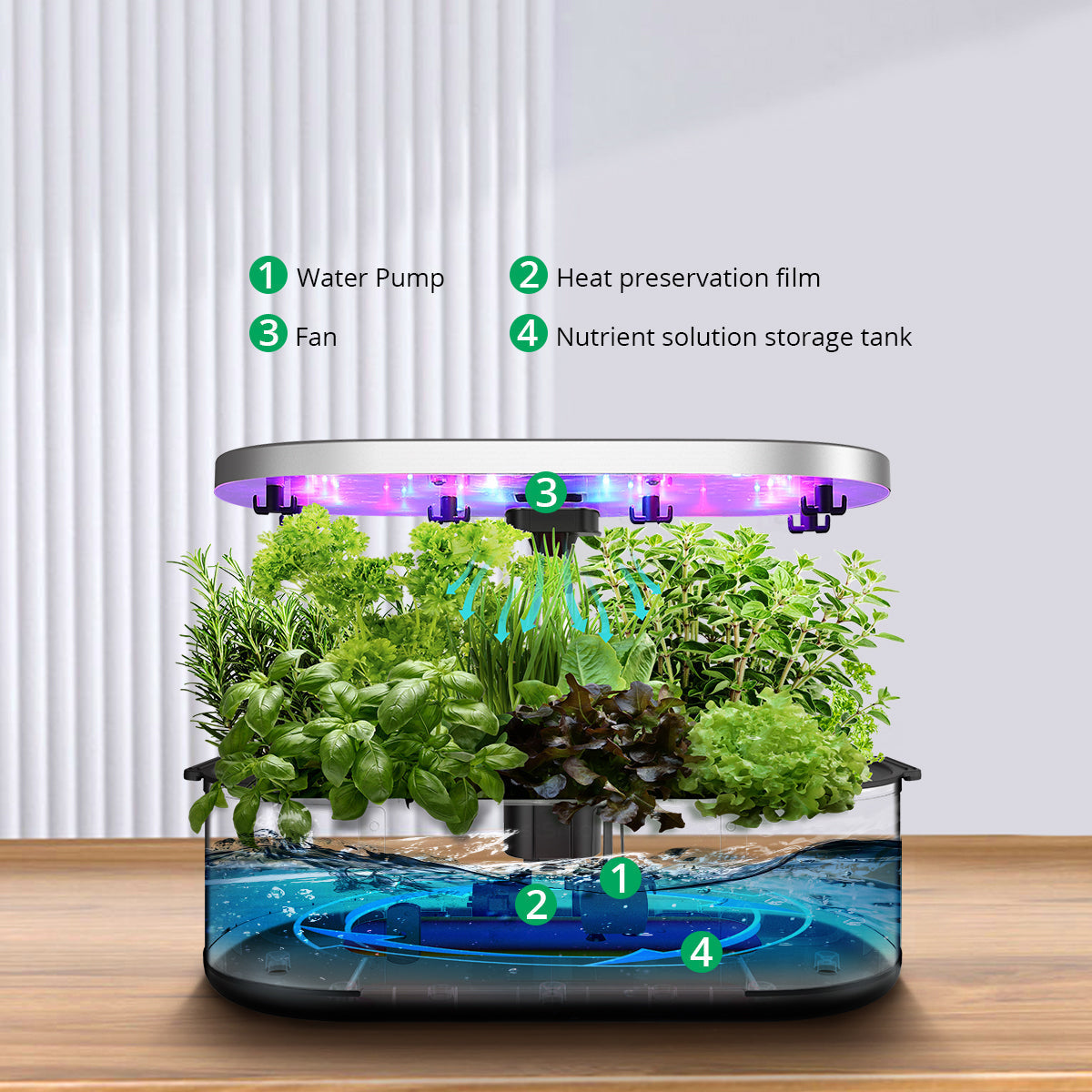 12 Planting Pods With Fixing Slots It can grow up to 12 plants simultaneously. And we have designed 4 fixing slots on the planting slot to keep the planting basket from shifting, |