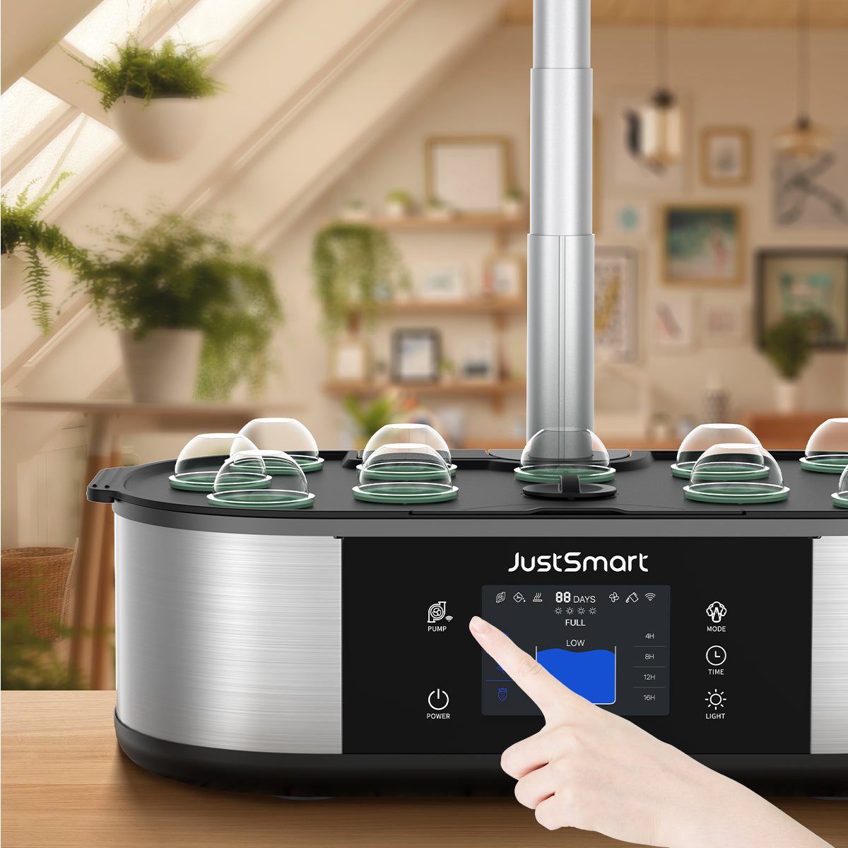 Large 3.5 inch Display Screen Equipped with a 3.5-inch large operation interface, which can display the pump status, running time, 4 brightness settings, Wi-Fi connection status, automatic watering/fertilization/keep warm/ventilation status ,3 light modes, water level status, and timing status. |