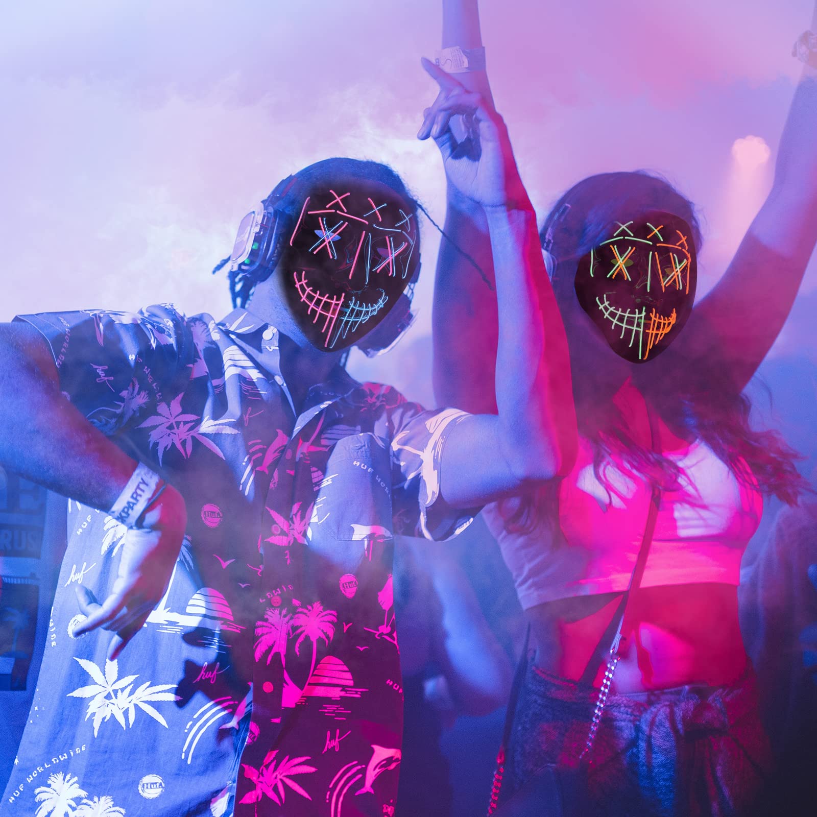??RELIABLE MATERIAL & COMFORTABLE??--This purge mask light up are made of high-quality PVC material, very light & no pungent smell, can be worn with peace of mind. The LED light uP mask with led light is soft, no ultraviolet ray damage. Our led halloween mask won't cause eye strain, NO adverse effects on the human body. The forehead of the led purge mask is equipped with a sponge cushion so that your forehead will not feel uncomfortable.