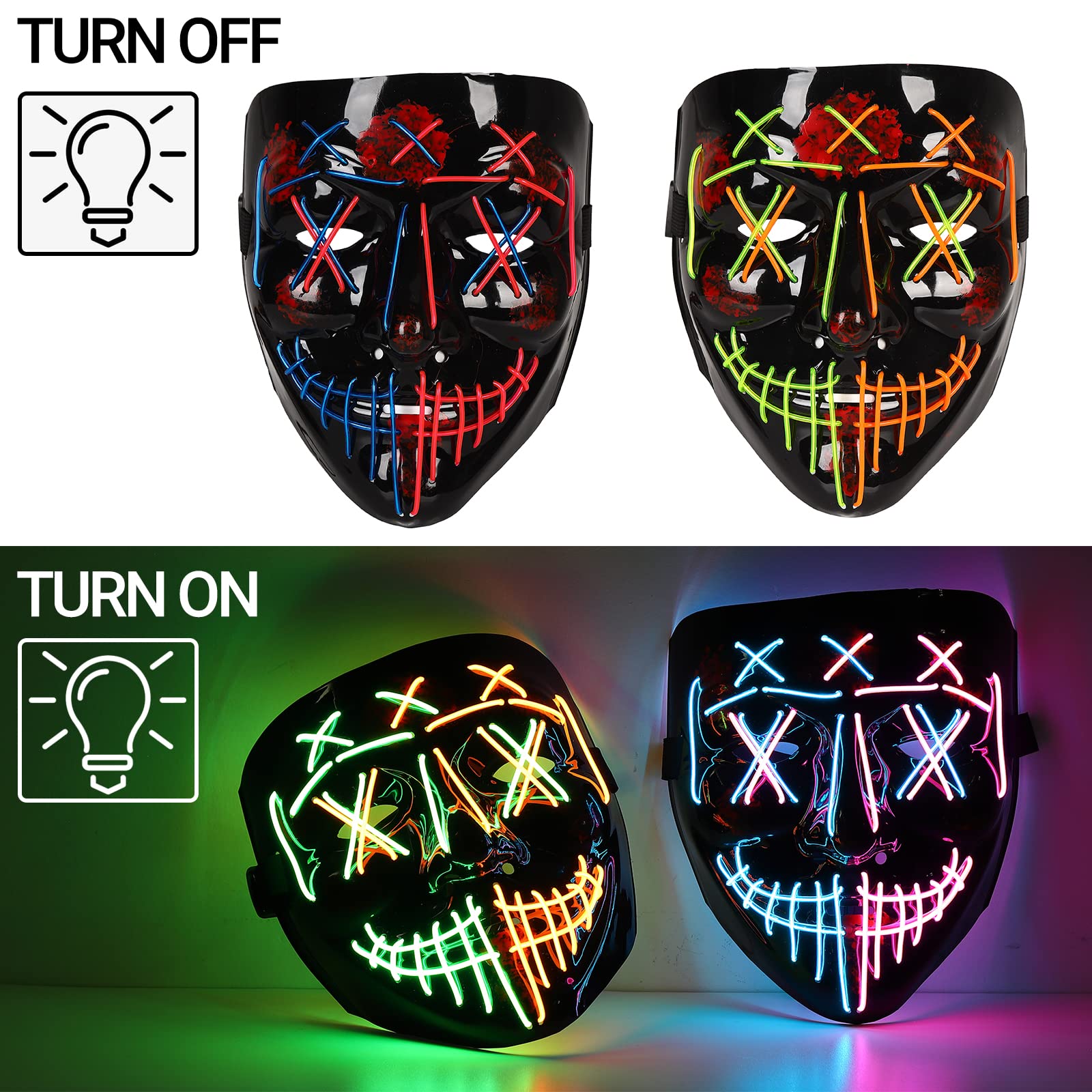 WHIZMAX Halloween 2 Pack Led Masks Scary Mask