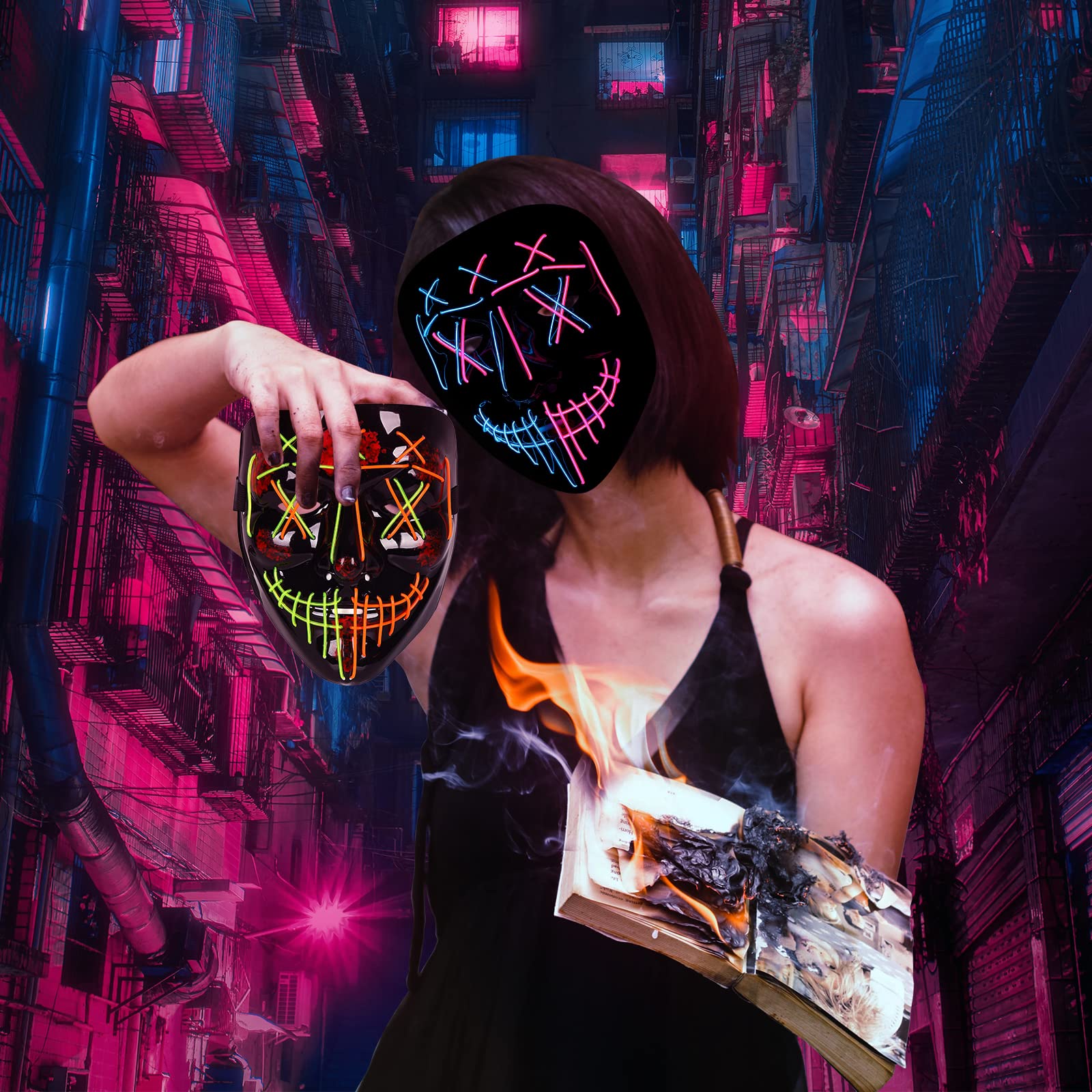 ??4 LIGHT MODES??--Our Led light up purge mask is designed with 4 lighting settings(off, constant on, slow flash & fast flash). The operation is simple and convenient, just press the button to switch to the modes you want to meet your different needs, and continues to use for more than 24 hours. You can switch to the favorite mode according to the mood. Let the led purge mask lights up your Halloween! Need two AA batteries(not include).