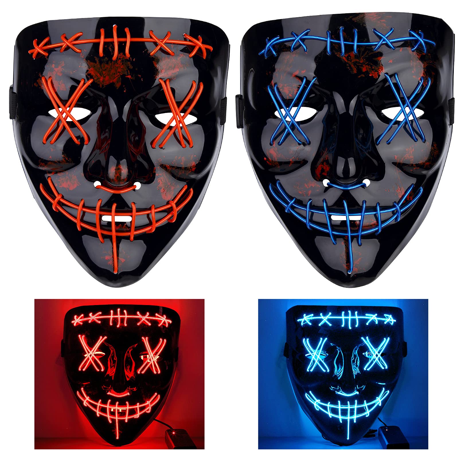 WHIZMAX Halloween 2pcs LED Mask Scary Mask Blue Red