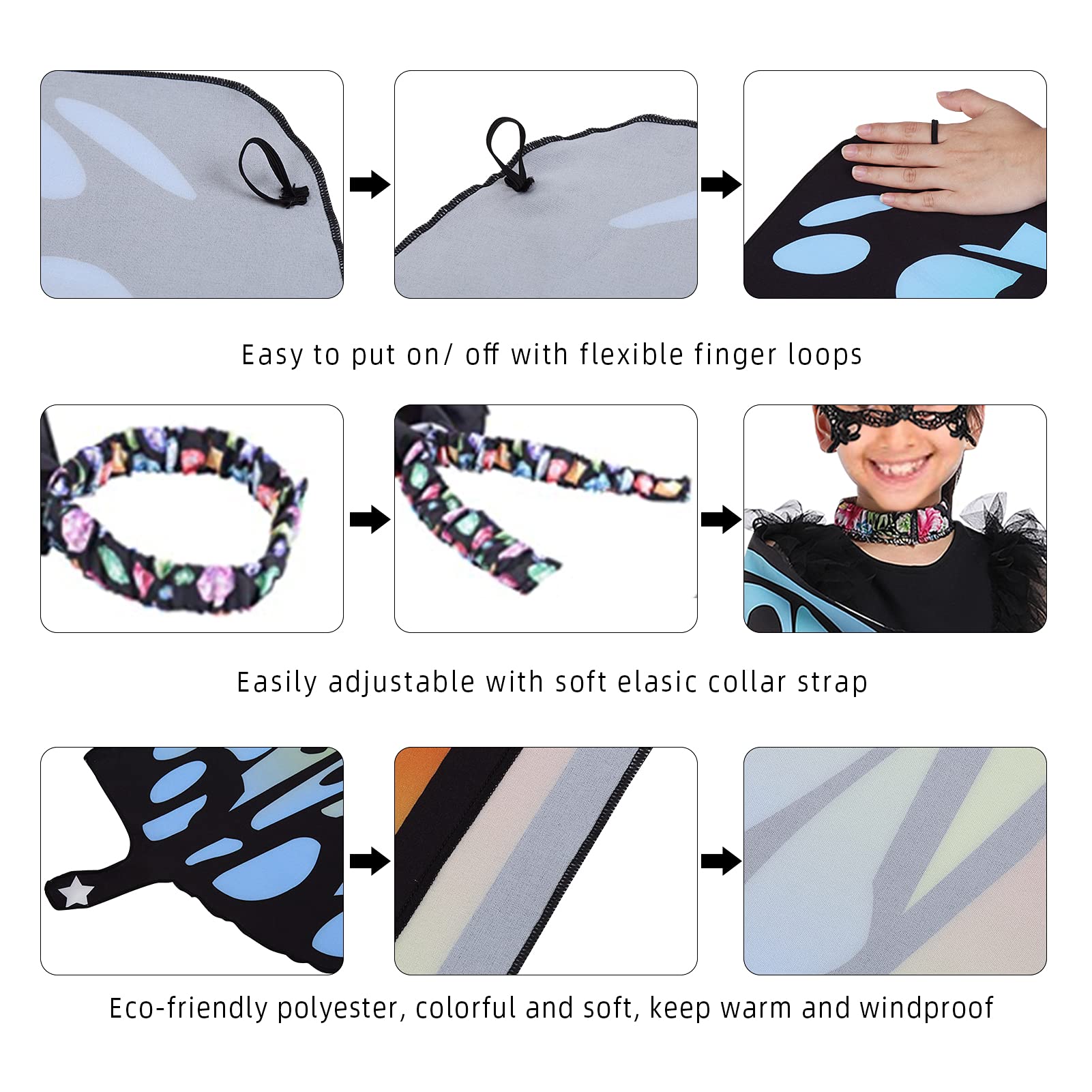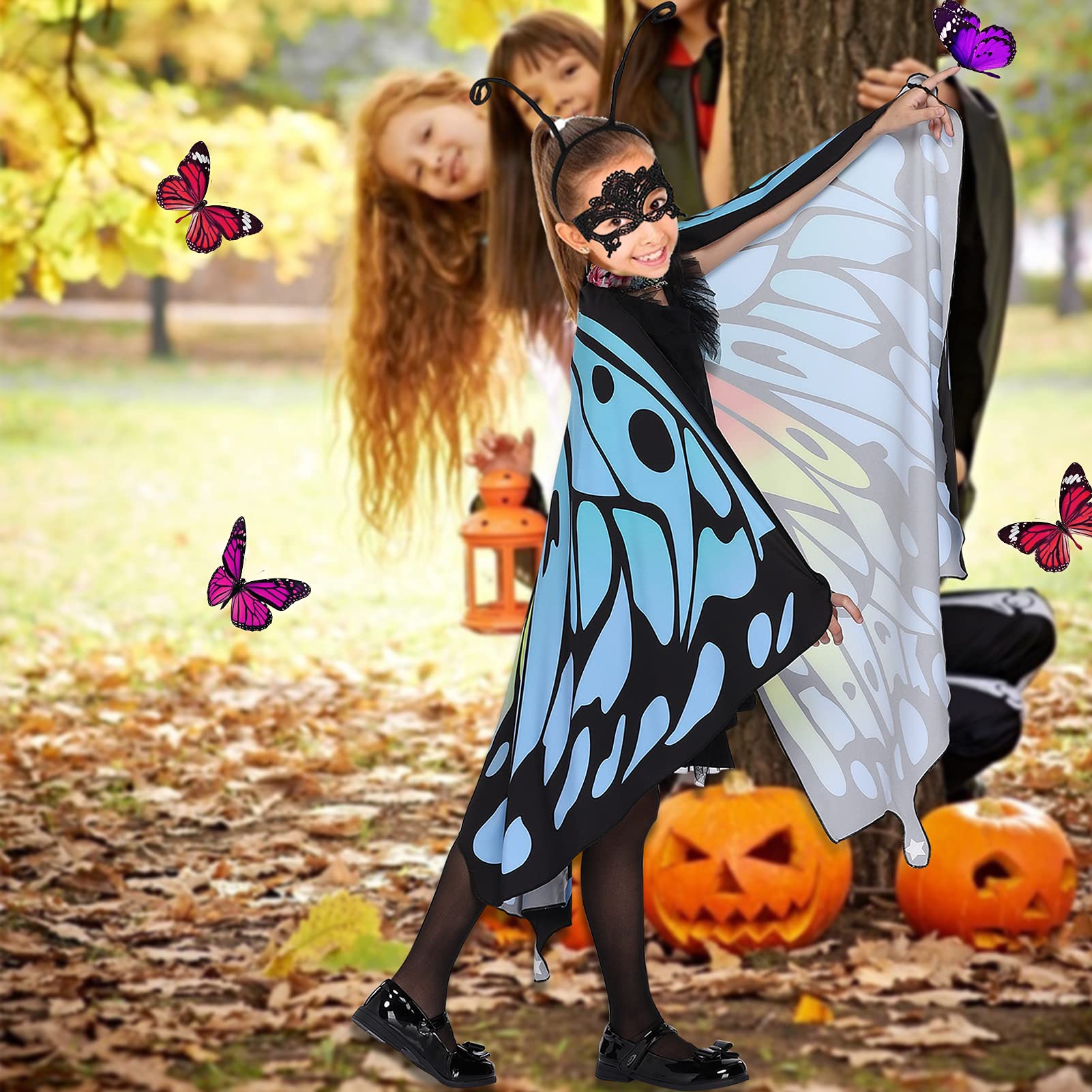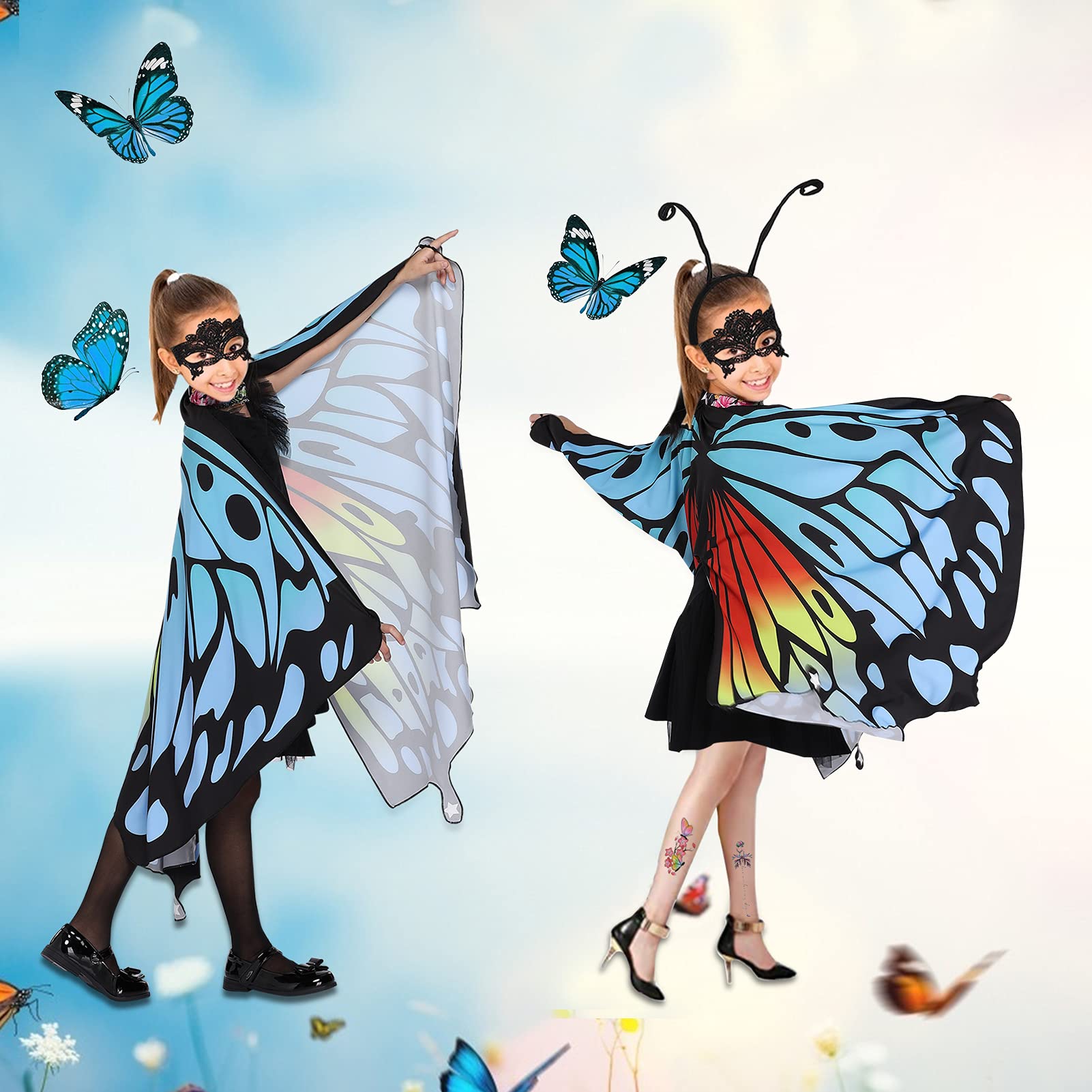 ??PERFECT COSTUME DESIGN??- Paired it with a lace butterfly mask and black antenna headband is shaped like cute insect for you, The elegant and colorful butterfly cape, making girls look more attractive like a butterfly nymph pixie.