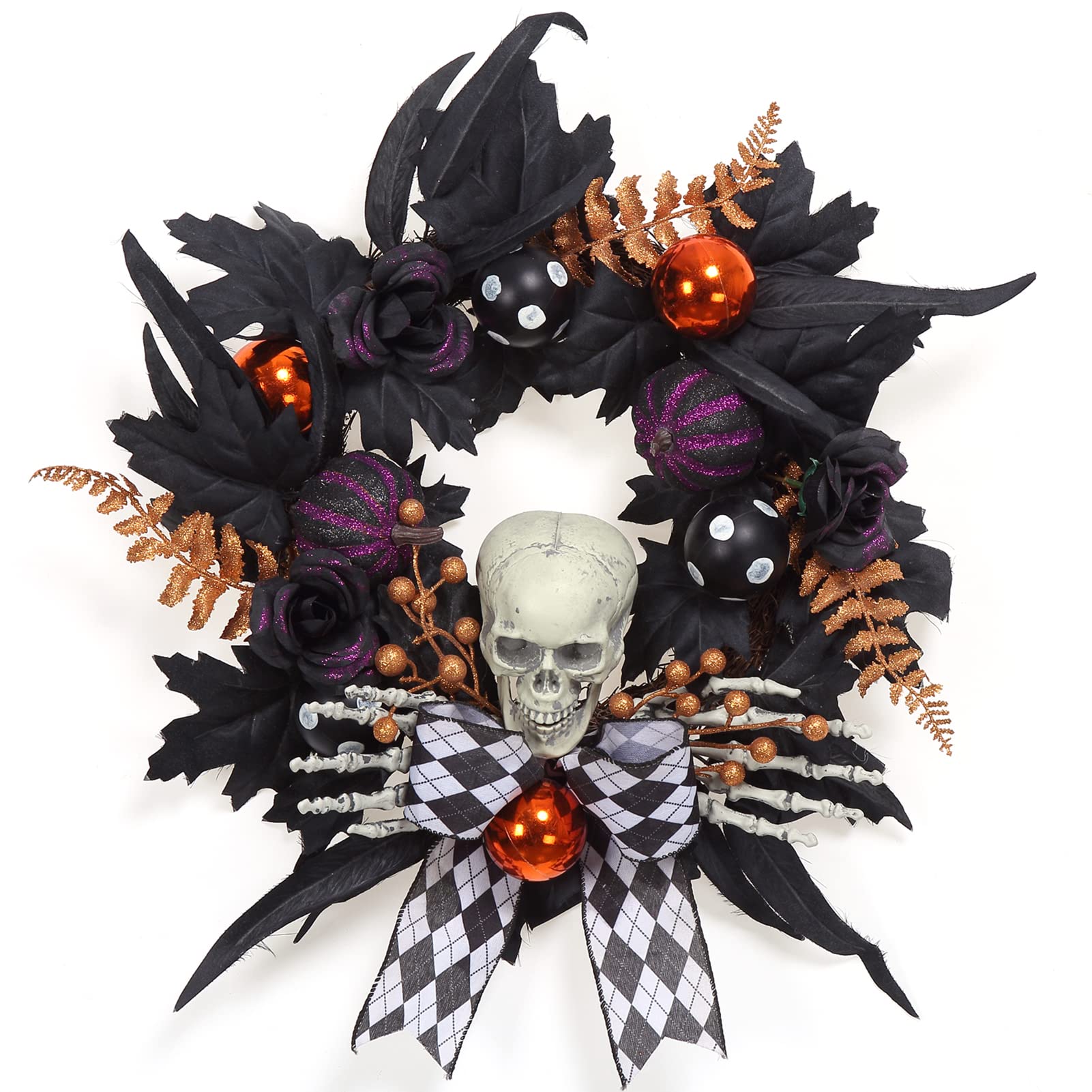 Premium Quality & Durable: This skull Wreath is made of high quality and durable non-toxic materialIt . The base of wreath is natural rattan,treated with the pressing technology to prevent ornaments from falling off the wreath,which is great to reuse.