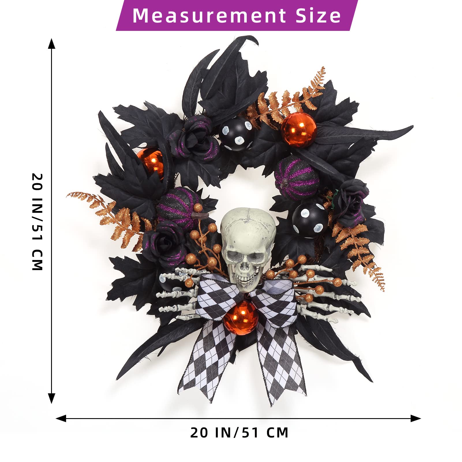 Plump Wreath: This door wreath is 20 inches.This size is suitable for indoor and outdoor use. Perfect for halloween outside door, porch, tree, fence, yard, etc decorations and giving the trick or treaters a thrilling greeting.