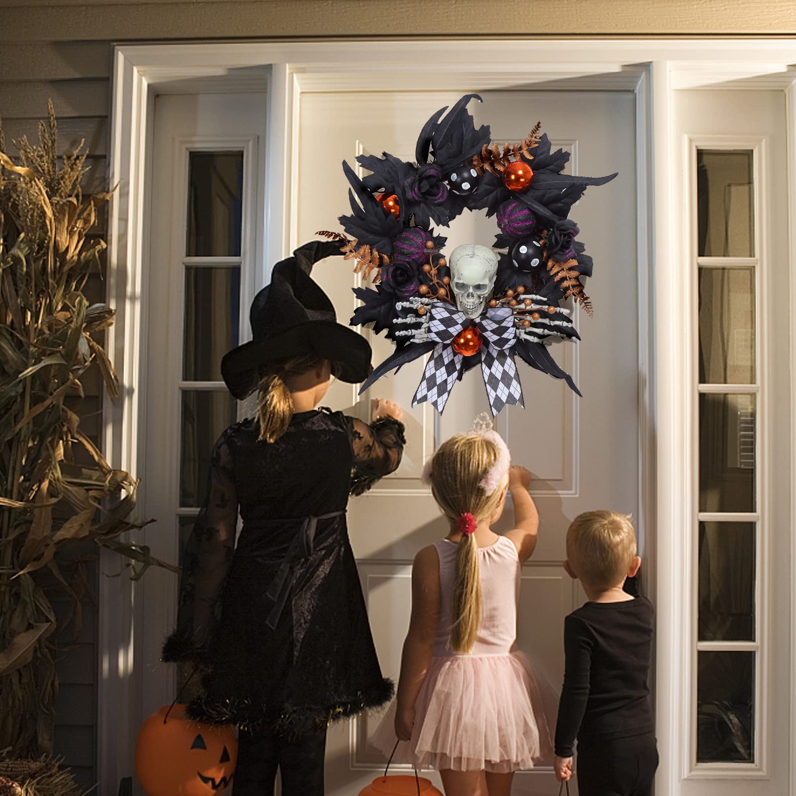 WHIZMAX Halloween Wreath for Front Door Skeleton Decorations
