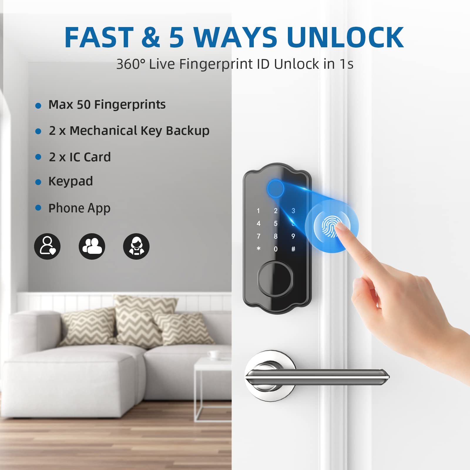 - 0.5 seconds Fast Fingerprint Unlocking -?Don't need to look for your key in the rain, just get into the house quickly