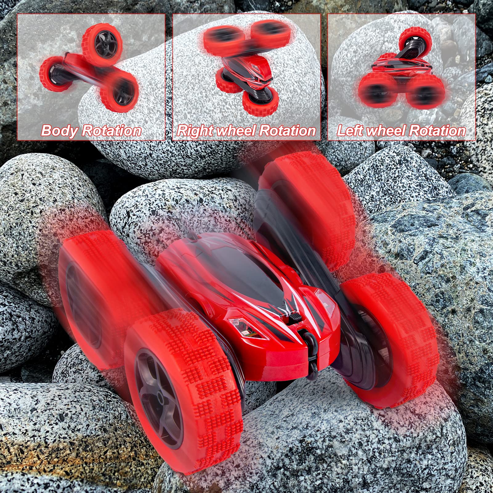 WHIZMAX Remote Control Car 1165A RC Stunt Car Toy Double Sided 360 Rotating Vehicle Red