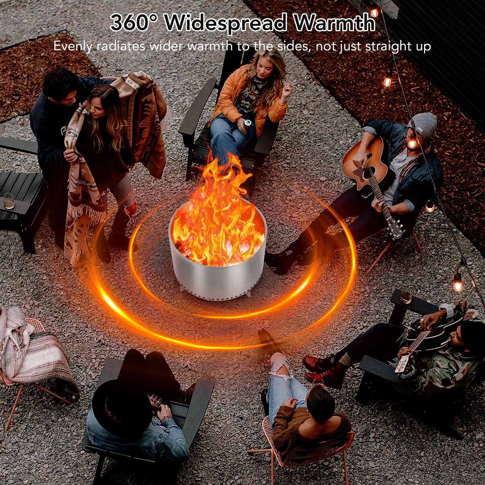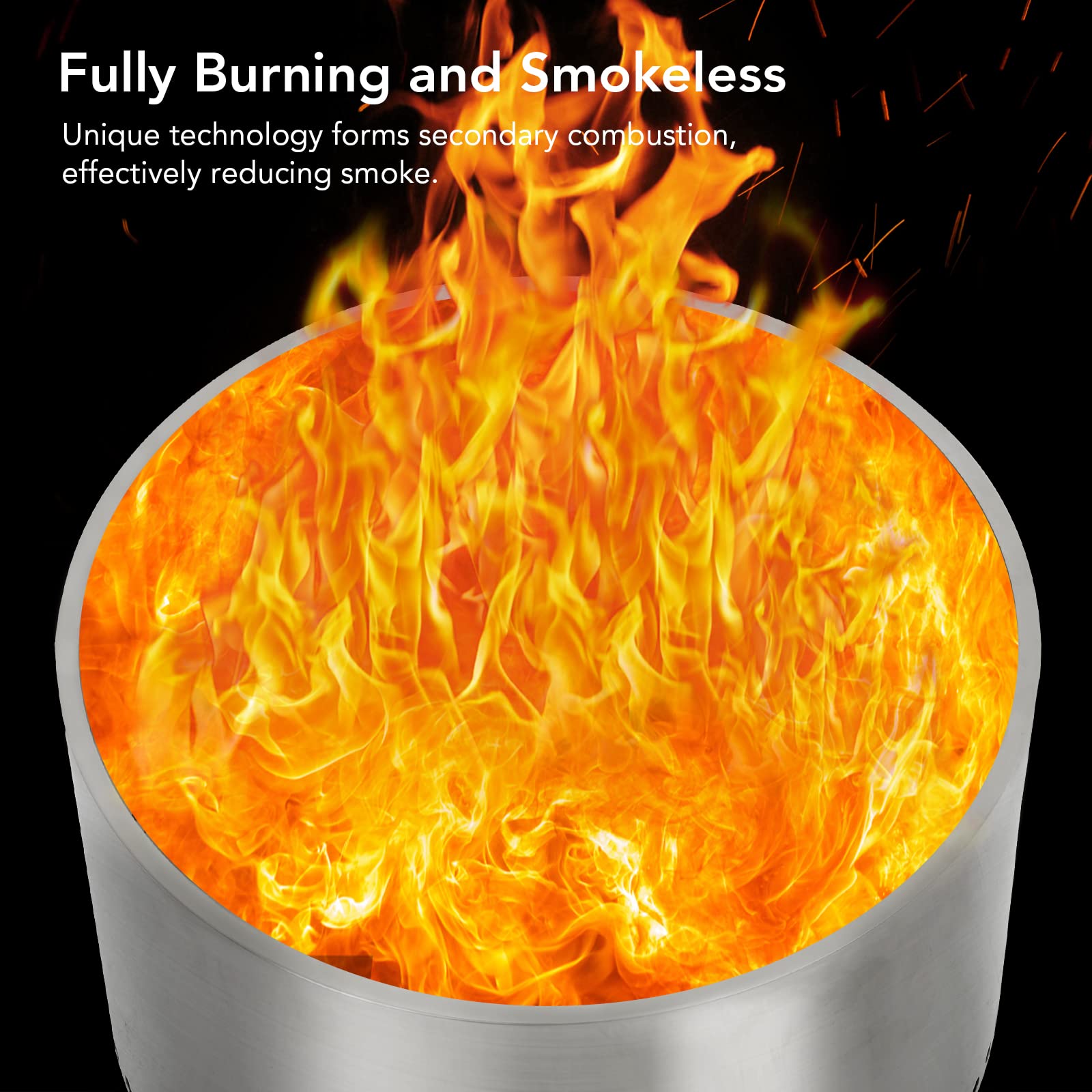 WHIZMAX 20.5 Inch Smokeless Fire Pit For Outdoor Wood Burning Without Handle Portable Stainless Steel Camping Stove