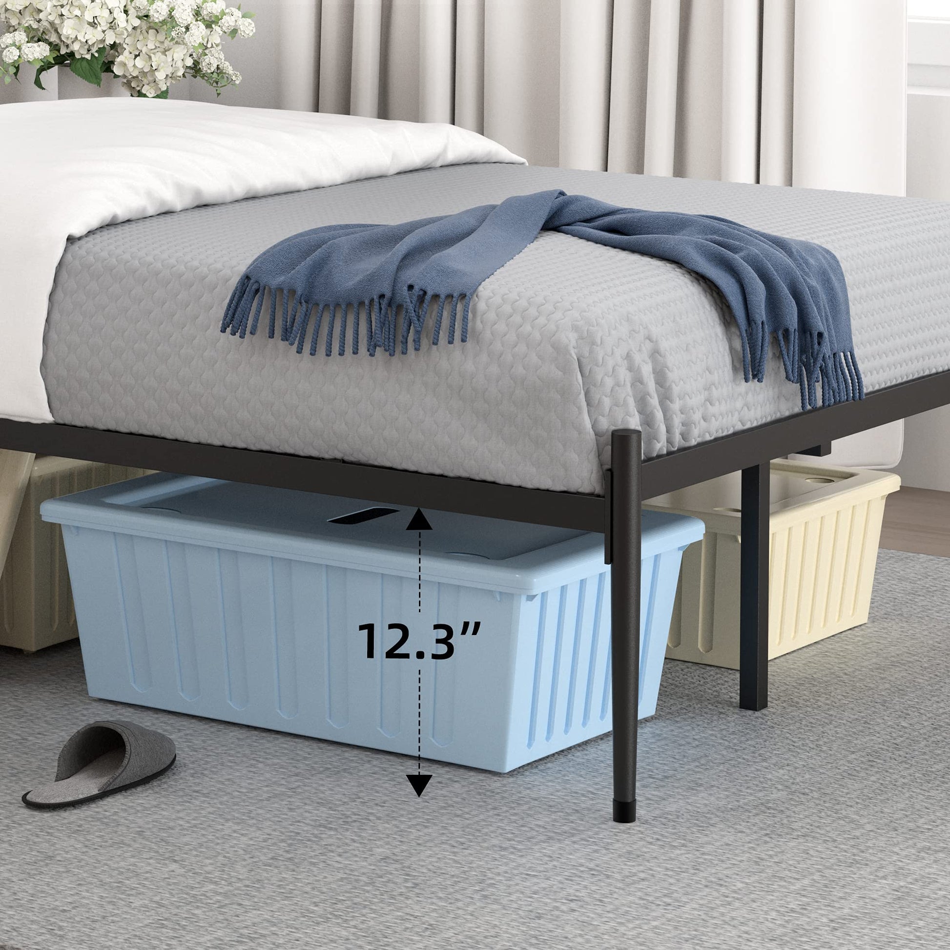 The bed frame stands 12.3" off the floor for easy storage. You could put some storage boxes under the bed to tidy your clothes, toys or quilts. Making the room well-organized.