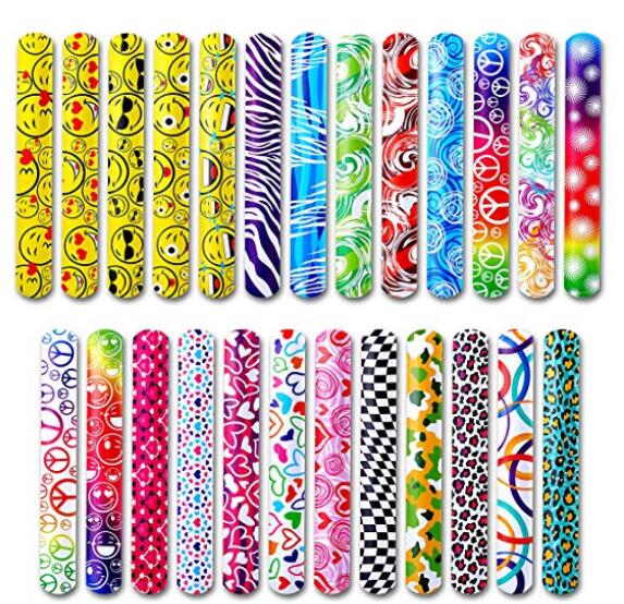 Very Value: Comes with 30pcs slap bracelets and 4pcs stickers in a pack, enough quantity for party, very value.High-Quality Material: The slap bracelets and stickers are made of PVC and sheet steel, high-quality environment-friendly material, non-toxic, durable, soft, through international testing.15 Different Designs: 15 different designs with bright color, sturdy and colorful. Slap-on your wrist to form a bracelet.Easy to Use: Each bracelet measures 8.25 inches. Soft and curly£¬easy to wear. One size fits all. These won't fall apart and will last a long time. Suitable for ages 3+.Widely Used: Perfect for Valentines Day Classroom Exchange Party Favors, Birthday Giveaways, Game Prizes, Prizes for Students, and Goodie Bags, etc. A classic toy that¡¯s fun for all ages.