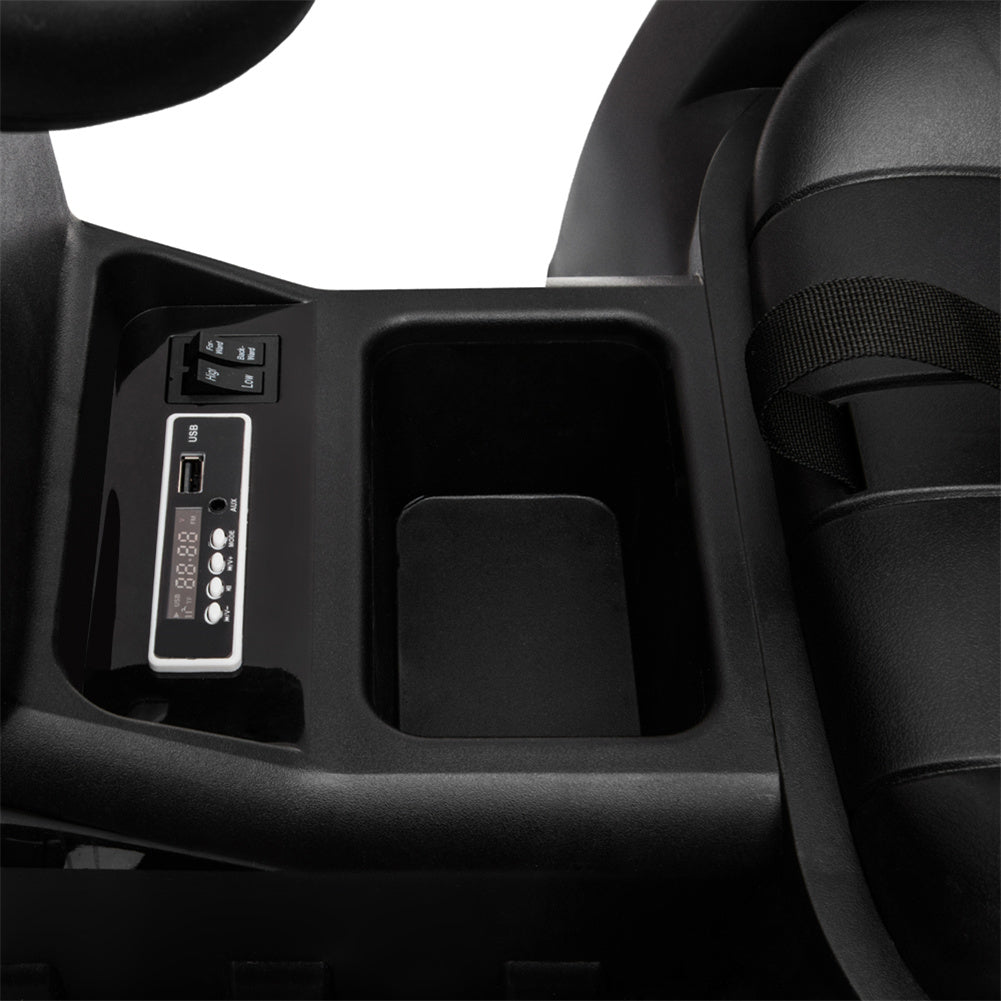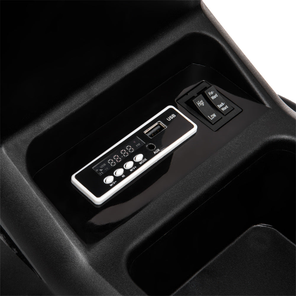 Design: Equipped with MP3 player, radio, USB port. Available to support MP3 format. 2 speeds plus reverse (2.17 & 4.72 mph).