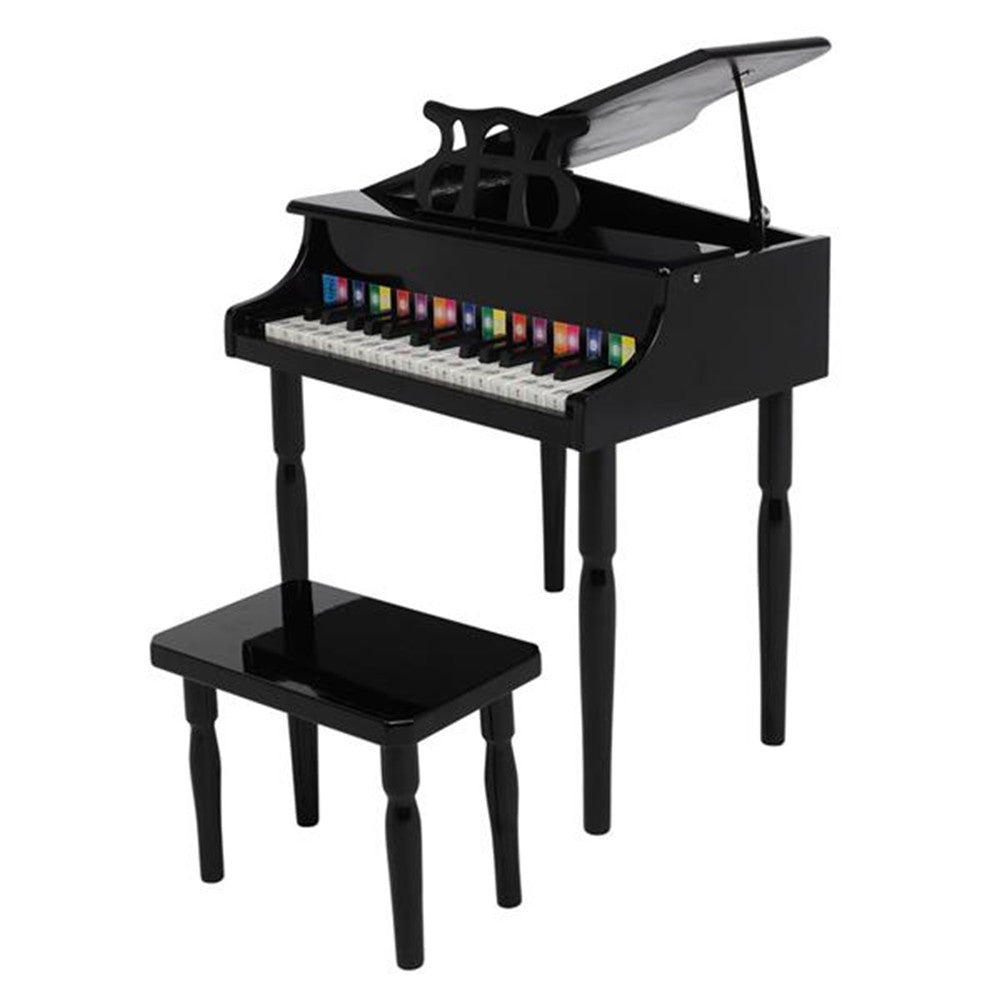We love this little piano. First of all, it's just so stinkin' cute....a majestic grand piano, scaled down to a child's size. With that being said, I feel that this is a really good product, all things considered. Because of its size, I don't expect my kids to ever be able to play Rachmaninoff on it, but it has certainly sparked my kids' interest in music overall. It has a clear, quality sound to it that, even when my kids bang on it, still sounds pretty.