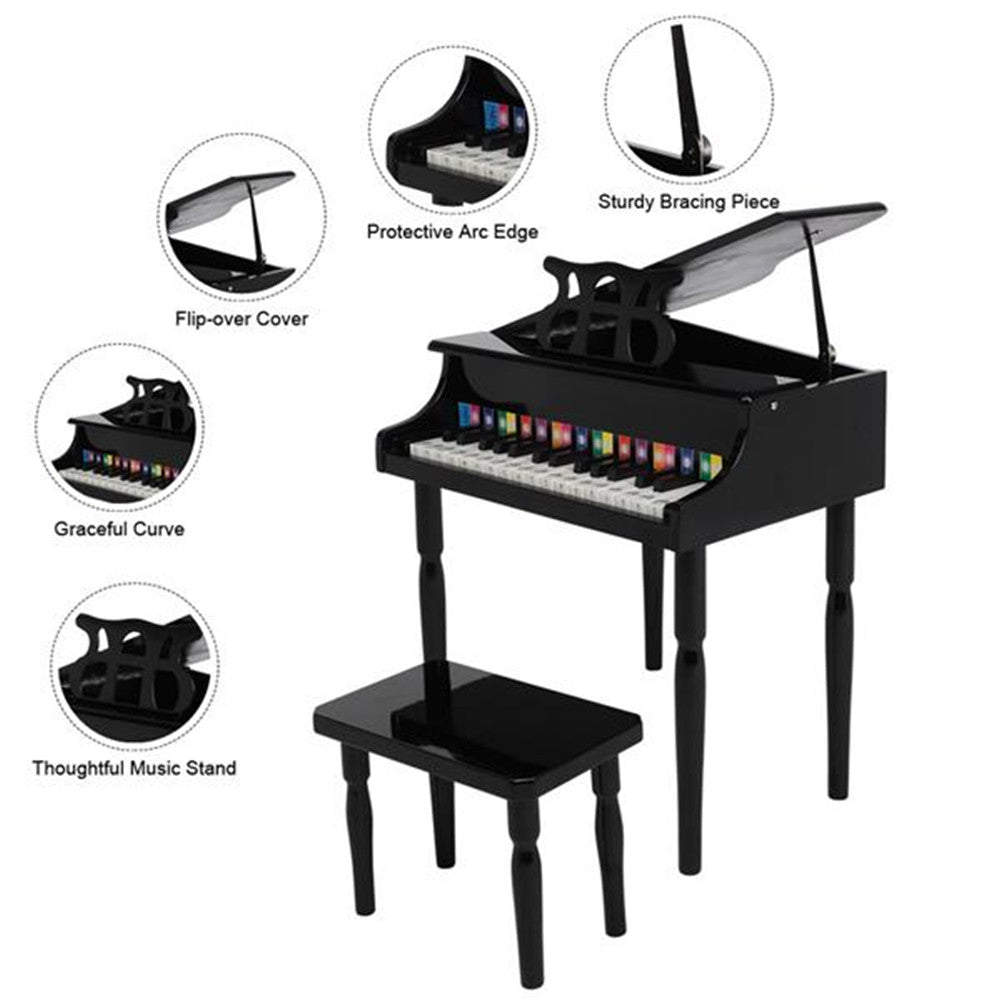 Premium quality: mechanical sound,30 manually tuned keys, providing ideal music introduction Four feet design: can keep the piano stable, prevent it from droppingIncrease visual and hearing ability