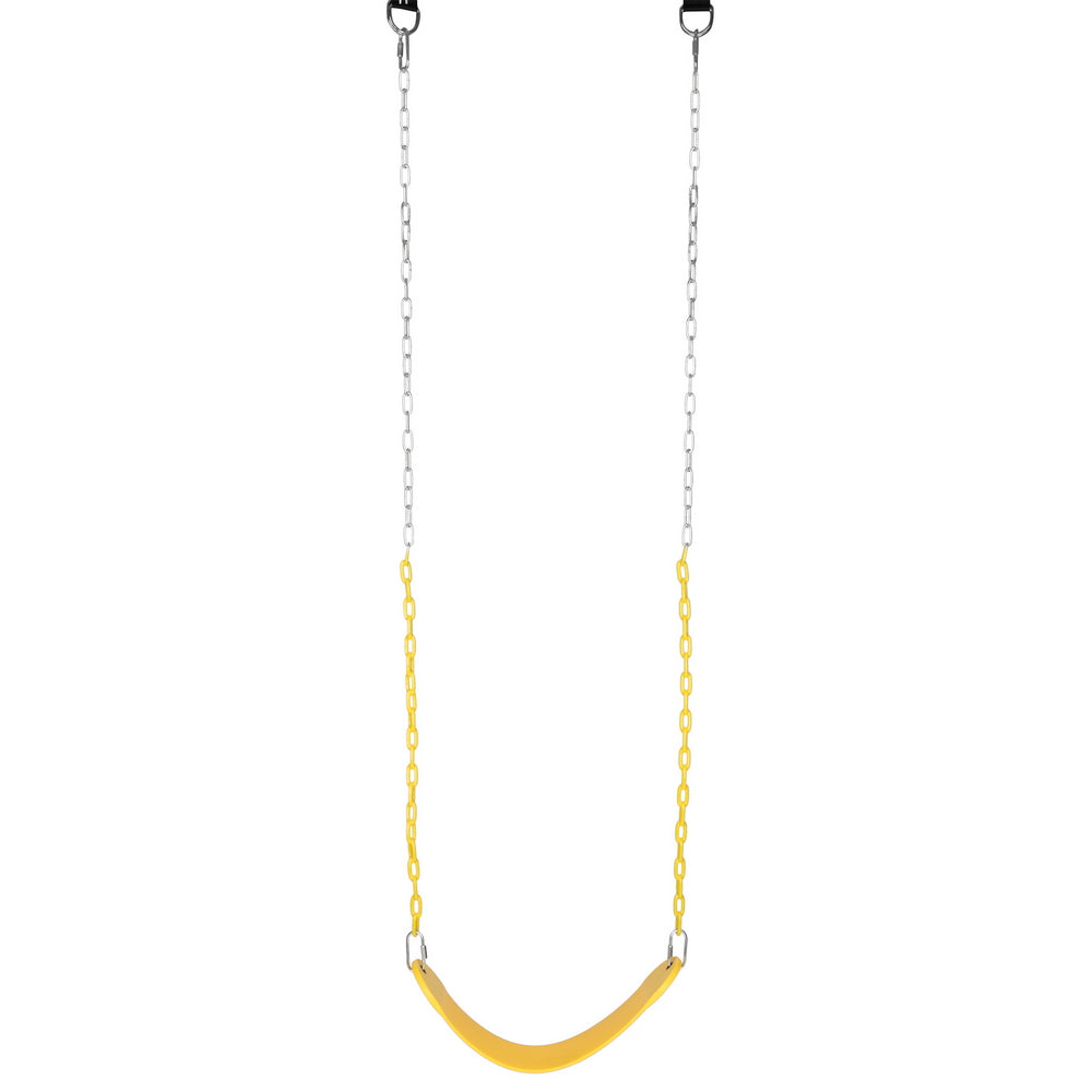--Fully assembled connected 60" long 2/0 zinc-plated chains yellow plastisol coating specifically designed not to pinch little fingers
