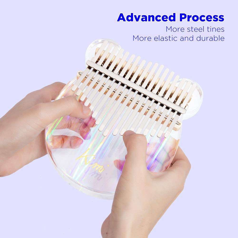 YIWA Kalimba Acrylic 17 Key Transparent Thumb Piano - Rainbow Bear Shape